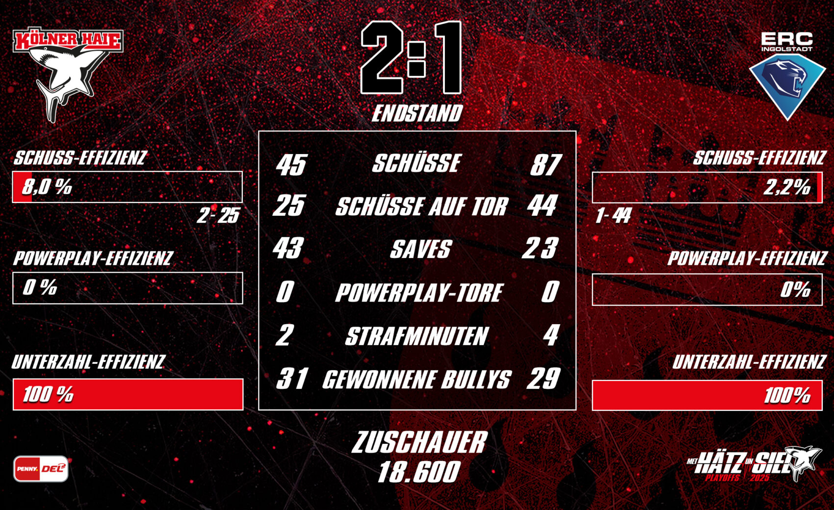 Wir fahren im Halbfinal-Spiel 4 gegen den ERC Ingolstadt einen 2:1-Sieg ein und liegen in der „best of seven“-Serie nun mit 3:1 vorne. Maxi Kammerer und Gregor MacLeod schieen in einer ausverkauften und stimmungsvollen LANXESS arena unsere Tore. Wir haben den Spielbericht zu Spiel 4 des Halbfinals.