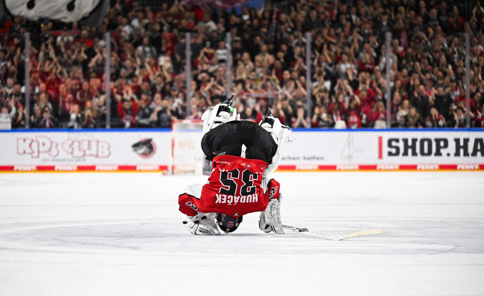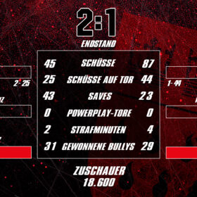 Zwar kamen die Gäste durch Leon Hüttl nach 53 Minuten zum Anschlusstreffer und sorgten damit nochmal für ordentlich Spannung, doch wir konnten alle weiteren Angriffe der starken Gäste mit jeder Menge Leidenschaft, Wille und einem starken Julius Hudacek im Tor vereiteln, sodass nach 60 umkämpften Minuten ein 2:1-Sieg für uns stand! Dieser sorgt dafür, dass wir in der „best of seven“-Serie (wer zuerst vier Spiele gewinnt, zieht in die nächste Runde ein) nun 3:1 führen.