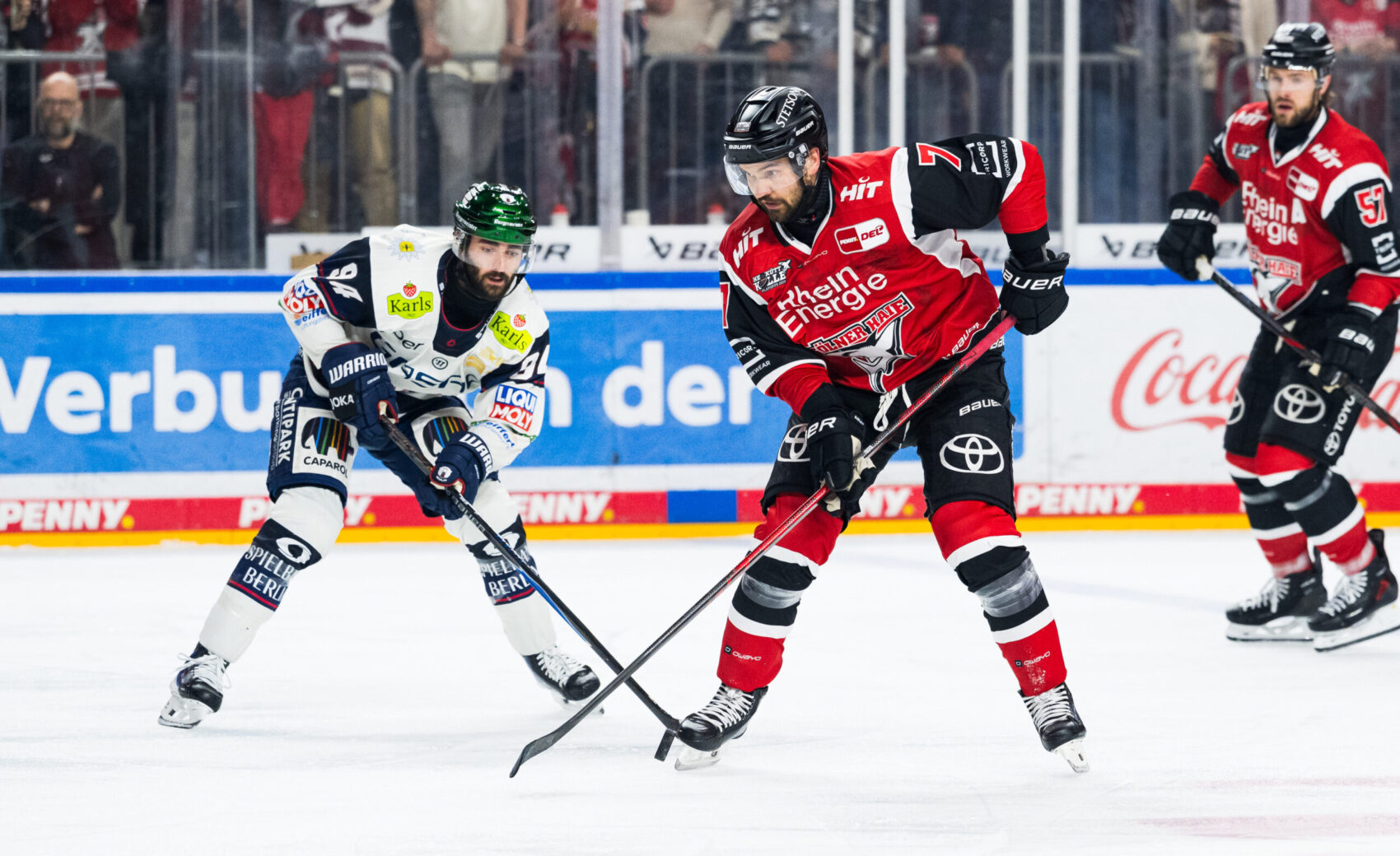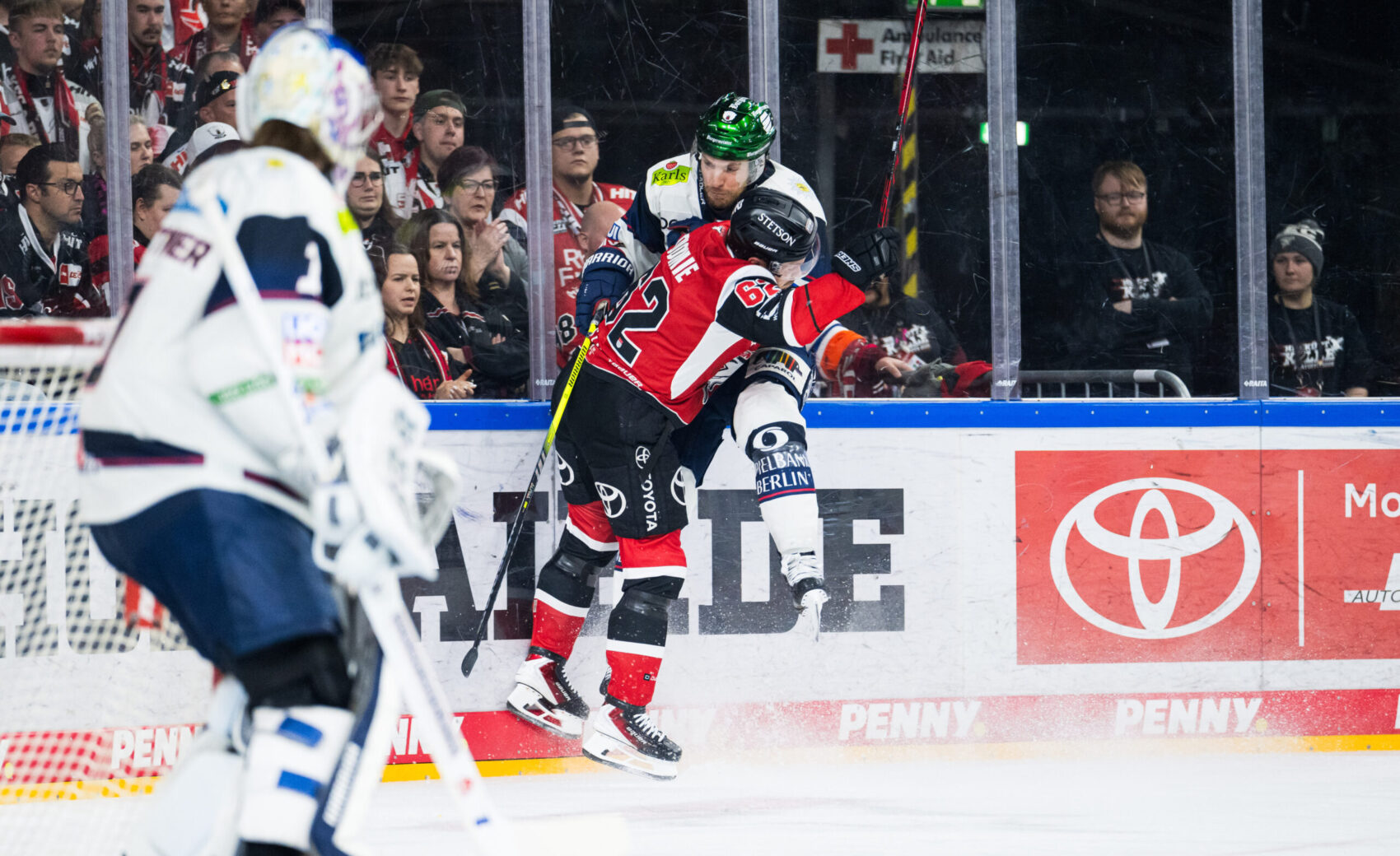 Doch damit nicht genug. Vier Minuten darauf wurde Louis-Marc Aubry stark von Bokk in Szene gesetzt und setzte die Scheibe aus spitzem Winkel an Eisbären-Goalie Jonas Stettmer vorbei – 4:1 (34.). Die Gäste reagierten mit einem Torhüterwechsel, Jake Hildebrand kam für Stettmer zwischen die Berliner Pfosten. Unsere Defensive blieb aufmerksam: Austin und Sennhenn warfen sich in Schüsse, Juvonen parierte ein Eins-gegen-Eins gegen Wissmann und fischte einen Handgelenksschuss von Pföderl trotz Sichtbehinderung. Mit 4:1 ging es in die zweite Pause.