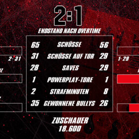 In dieser ging es Auf und Ab, beide Teams konnten gute Chancen verzeichnen, ohne diese jedoch zu nutzen. Dann kam aber die 74. Minute und in eben dieser Minute konnte MacLeod das Spiel zu unseren Gunsten entscheiden – unsere Nummer 89 tauchte nach einer Willensleistung frei vor Hildebrand auf und setzte den Puck, nach starker Vorarbeit von Schütz, in die Maschen zum vielumjubelten Sieg, der uns die Serie ausgleichen lässt.
