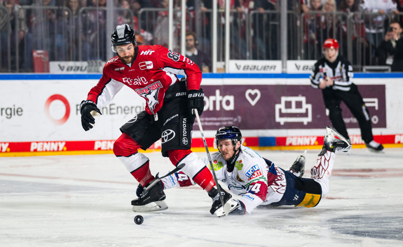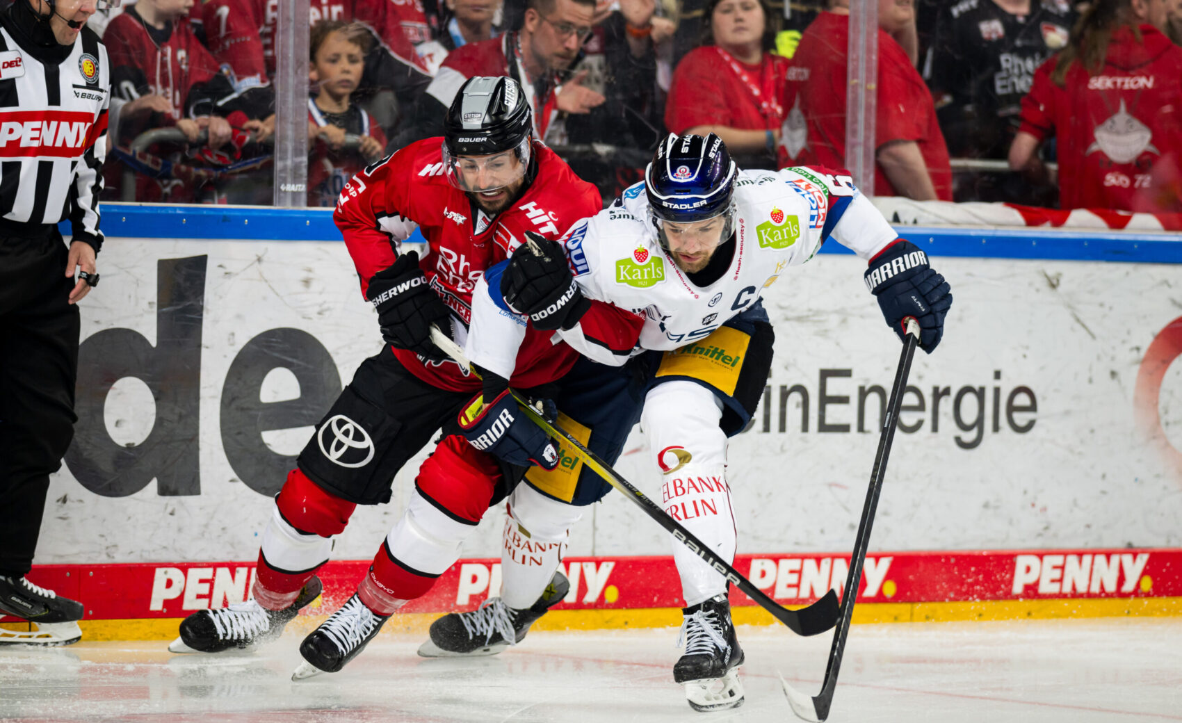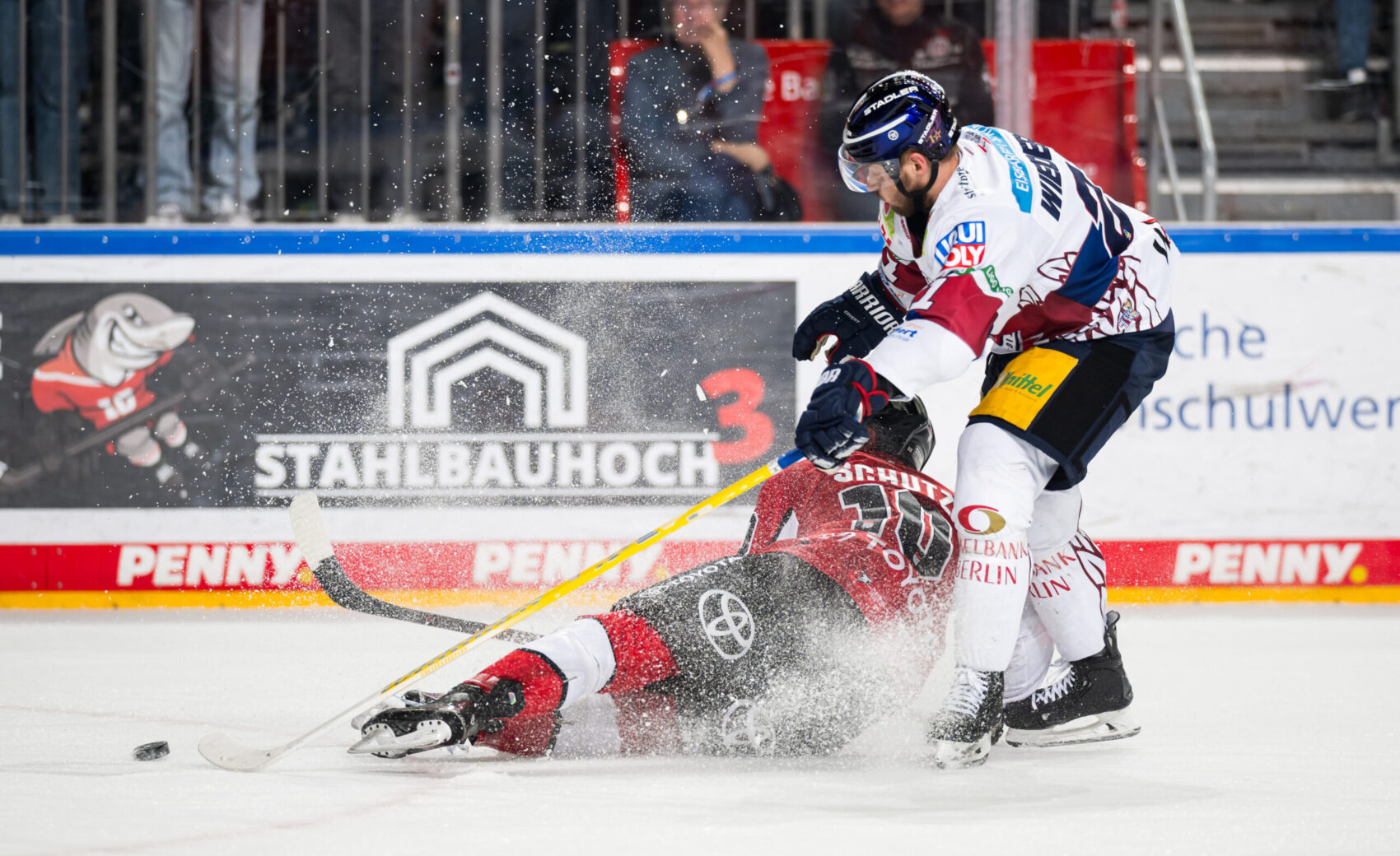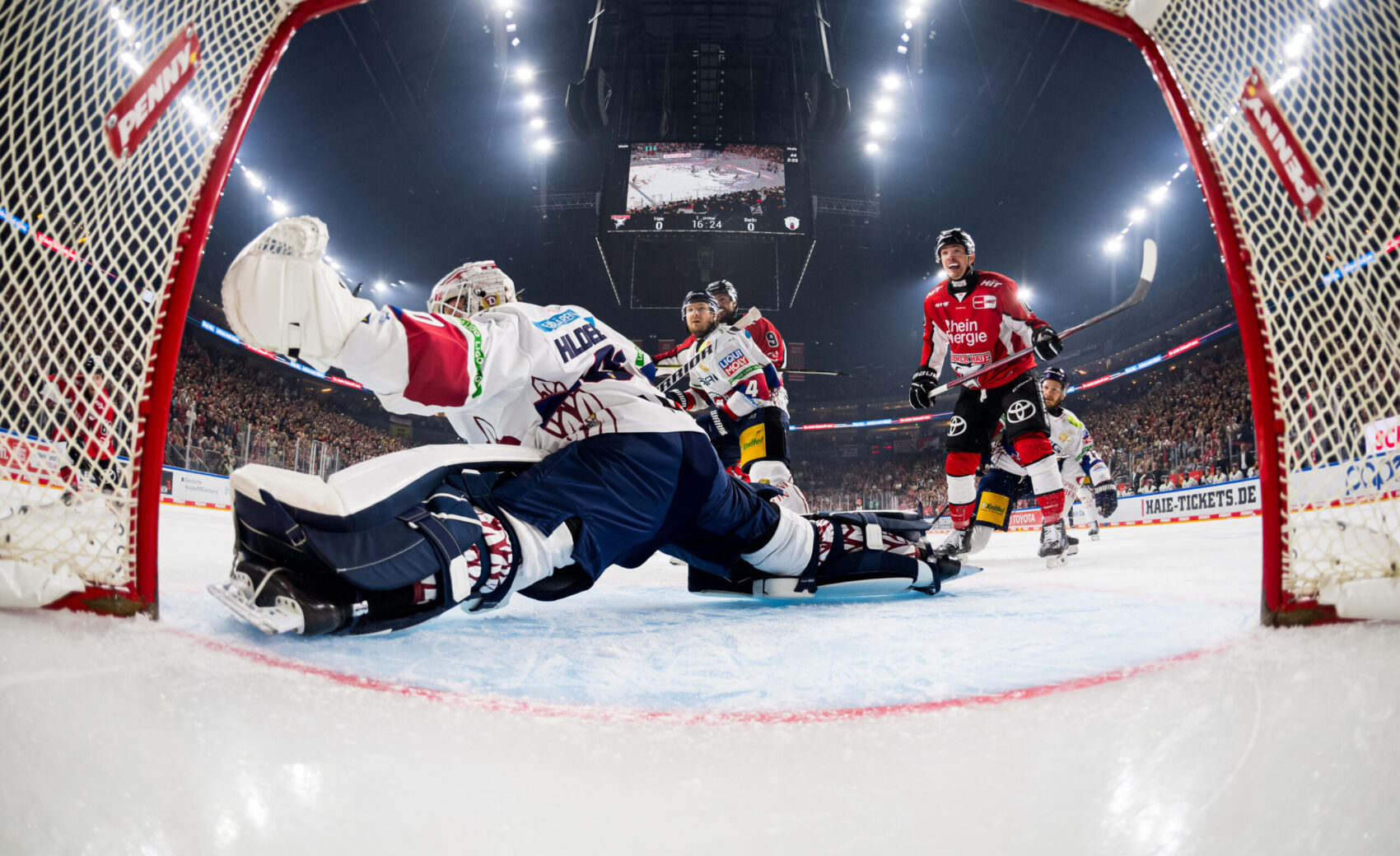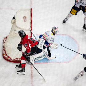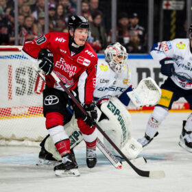 Kurz nach dem ersten Powerbreak der Partie zeichnete sich Hildebrand erneut aus, als er einen Haie-Schuss stark parieren konnte. Zum Ende des ersten Abschnitts kam der amtierende Deutsche Meister aus Berlin besser ins Spiel und gleich mehrfach gefährlich vor unser Tor. In der 14. Minute verzeichnete die Mannschaft von Cheftrainer Serge Aubin ihre bis dato beste Chance – von Lean Bergmann initiiert, kam die Scheibe gleich mehrfach vor unser Tor, wo Hudacek jedoch wach war und zwei, drei gute Möglichkeiten abwehrte. Die letzte gute Chance eines unterhaltsamen ersten Abschnitts gehörte den Eisbären durch Ty Ronning (16.), der mit seinem Versuch jedoch an Hudacek scheiterte. Mit dem 1:0 ging es in die erste Drittelpause.