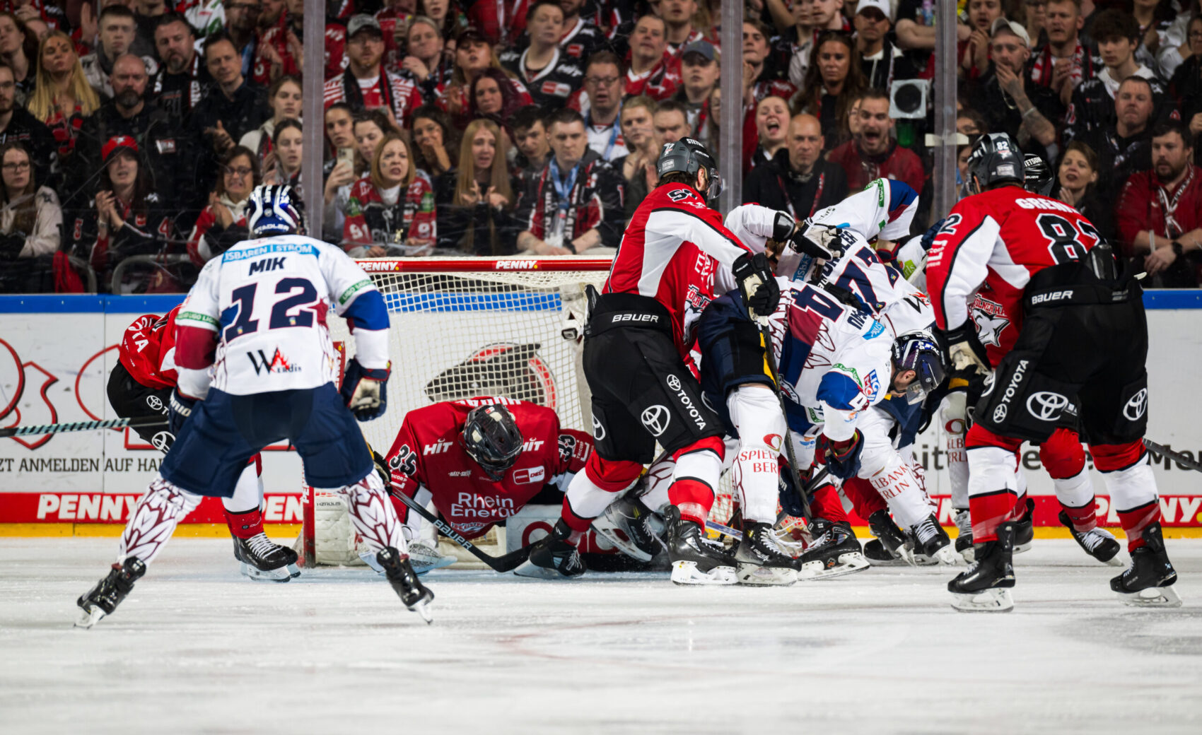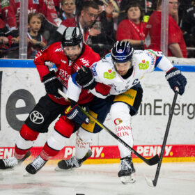 Wir gewinnen das zweite Spiel der „best of seven“-Finalserie gegen die Eisbären Berlin mit 2:1 nach Verlängerung und gleichen die Serie zum 1:1 aus. Nachdem uns Parker Tuomie früh in Führung bringt, kann Berlin im zweiten Drittel ausgleichen. Das letzte Wort an einem denkwürdigen Abend hat aber Gregor MacLeod, der die LANXESS arena in der 74. Minute und damit in der ersten Verlängerung zum Beben bringt – sein Treffer entscheidet die Partie zu unseren Gunsten. Wir haben den Spielbericht.