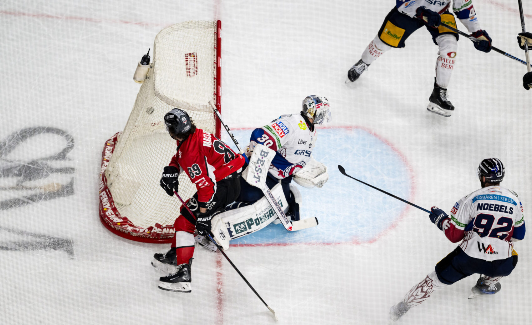 Wir kamen gut aus den Katakomben, jedoch hatten die Eisbären in der 44. Minute die erste Chance des dritten Abschnitts: Mit Tempo ging es in Richtung unseres Tores, wo die Scheibe kurz frei im Slot lag. Binnen weniger Sekunden waren beinahe alle Spieler auf dem Eis in den „Trubel“ involviert, doch Hudacek behielt die Übersicht und schnappte sich das Spielgerät, ehe es so richtig gefährlich werden konnte.