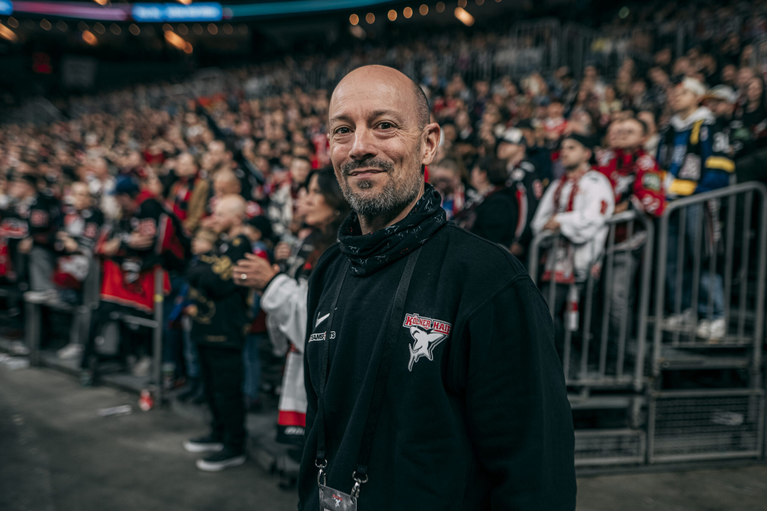 „Eishockeyfan bin ich seit über 30 Jahren. Als ich vor 20 Jahren nach Köln gezogen bin, war ich recht schnell auch das erste Mal bei den Haien und die Stimmung bei den Spielen war da schon immer besonders. 2010 war ich bei der Eishockey-WM als Volunteer dabei, so kam auch der Kontakt zur Geschäftsstelle zustande. Zwei Jahre nach der WM haben sich die Verantwortlichen der Haie bei mir gemeldet, dass die Haie-Crew gegründet werden soll und mich gefragt, ob ich Lust habe, dabei zu sein. Das war zu Beginn nur eine Hand voll Leute und ein richtig eingeschworener Haufen. Jetzt sind es deutlich mehr, ich bin immer noch da und die Haie lassen mich nicht mehr los! Warum? Die Faszination für den schnellsten Mannschaftssport der Welt, die Haie als Ganzes, die besondere Atmosphäre in der Halle, die Möglichkeit, Blicke hinter die Kulissen werfen zu können, die vielen bekannten Gesichter in der Arena und last but not least das kollektive Mitfiebern, mitleiden und bei besonderen Siegen auch die kollektive Ekstase.“