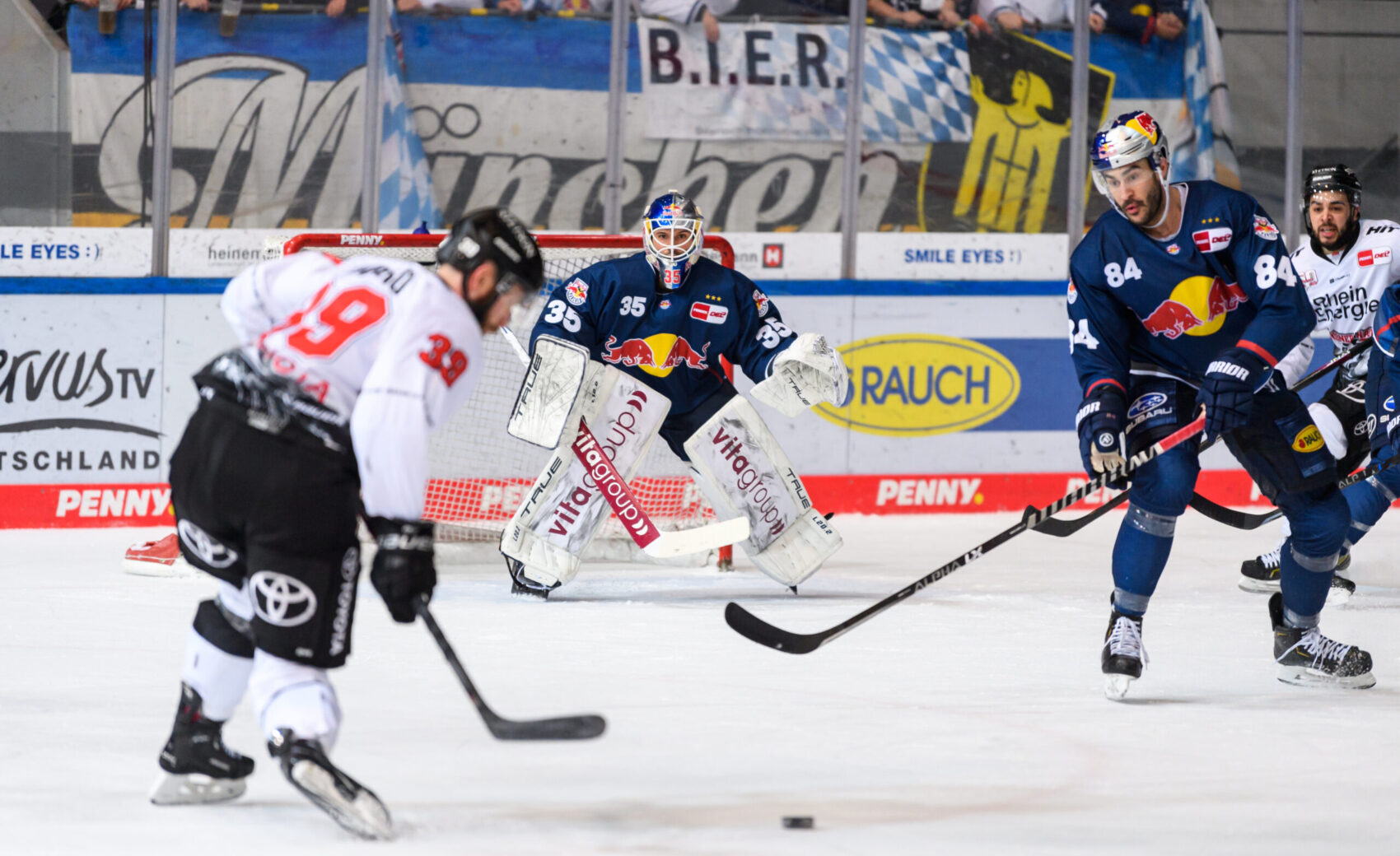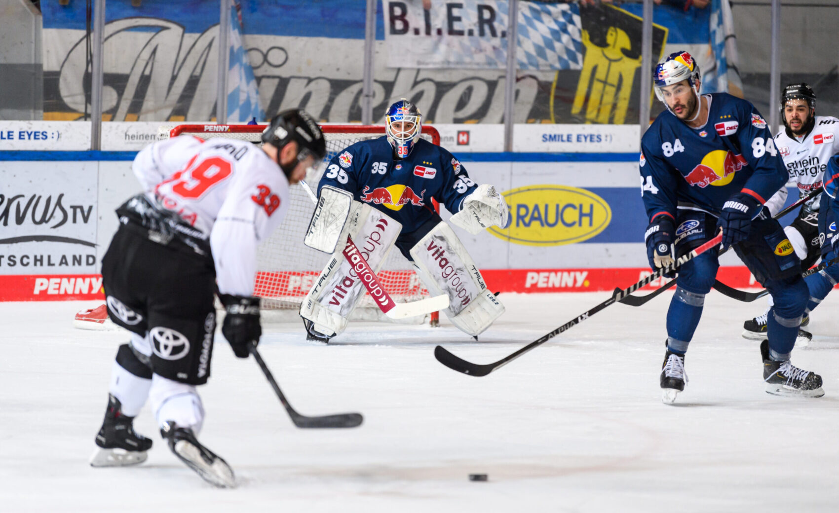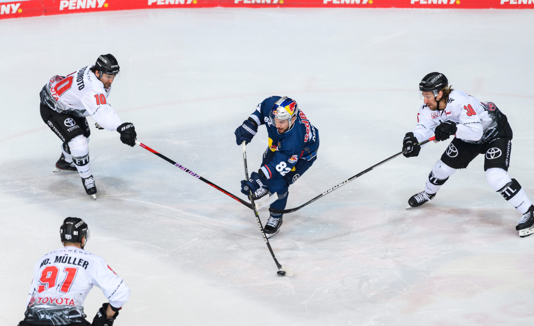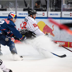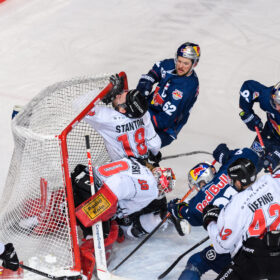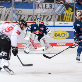 Obwohl die Haie eine Top-Leistung und sich selbst auch immer wieder in der Offensive vor Niederberger zeigten, kamen die Gastgeber kurz vor Schluss zum Anschlusstreffer. Patrick Hager, auffälligster Red Bulls Akteur, zog mit Tempo zum Tor und brachte die Scheibe im Gewühl wohl ein paar Zentimeter hinter die Linie – diese Ansicht hatte zumindest das Schiedsrichtergespann, welches sich die Situation nochmal im Videobeweis anguckte und auf Tor entschied. Der bis dahin sichere und starke Mirko Pantkowksi musste an diesem Sonntagnachmittag das erste Mal hinter sich greifen.