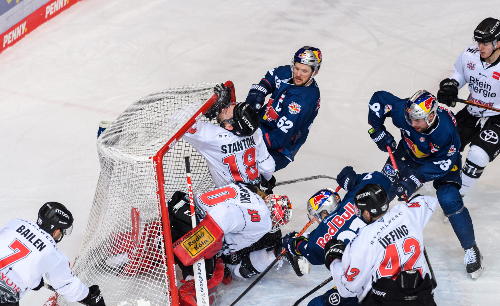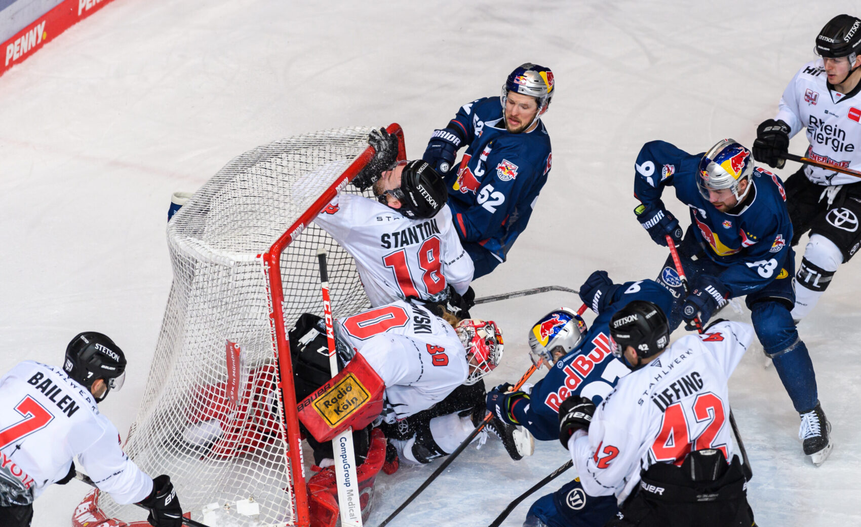 Der KEC überstand in einer wichtigen Phase des ersten Drittels ein RBM-Powerplay und schöpfte daraus selbst Kraft. Die Folge? Das 2:0 im eigenen Powerplay! Nick Bailen wartete in Scheibenbesitz auf den richtigen Moment, spielte den Puck zu Andreas Thuresson, der es mit einem One-Timer versuchte. Auf dem Weg Richtung Tor fälschte Aubry das Spielgerät entscheidend ab, sodass Münchens Torwart Mathias Niederberger das Nachsehen hatte, 2:0 für die Haie (18.)! Mit diesem Spielstand ging es in die erste Drittelpause.