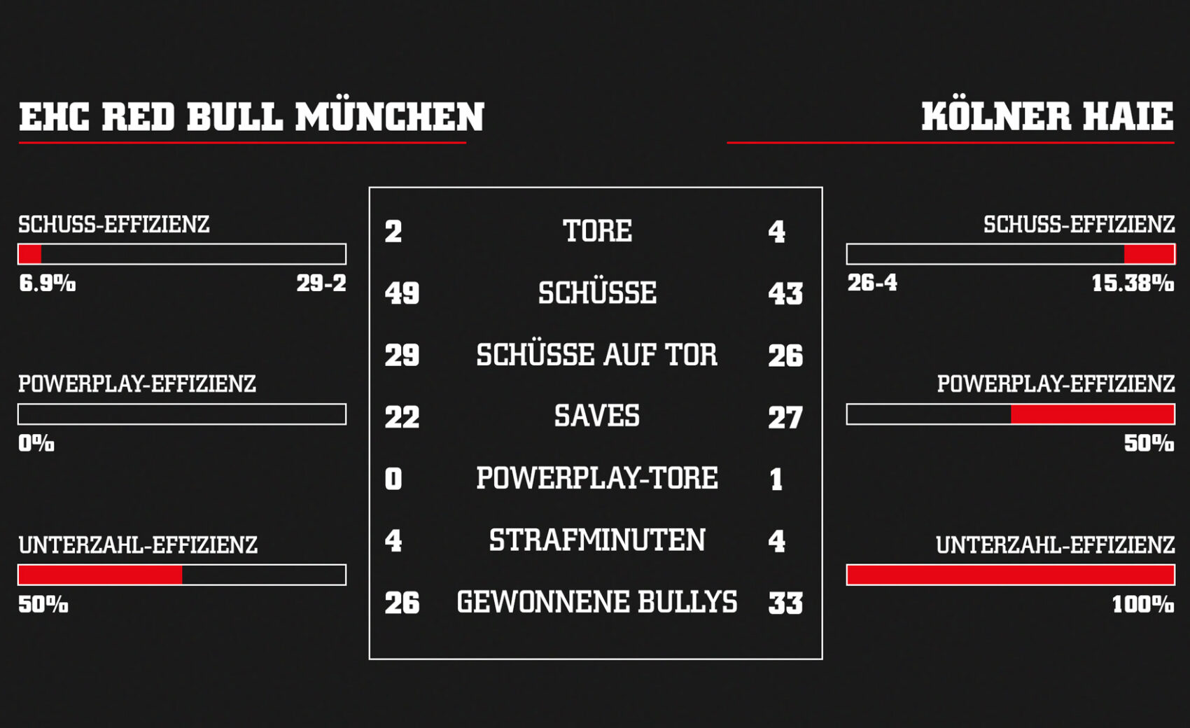 - Gleich vier Spieler mit einer +3-Statistik: Moritz Müller, Louis-Marc Aubry, Stanislav Dietz und Maximilian Kammerer sammelten in München ordentlich Punkte in der +/–Statistik
