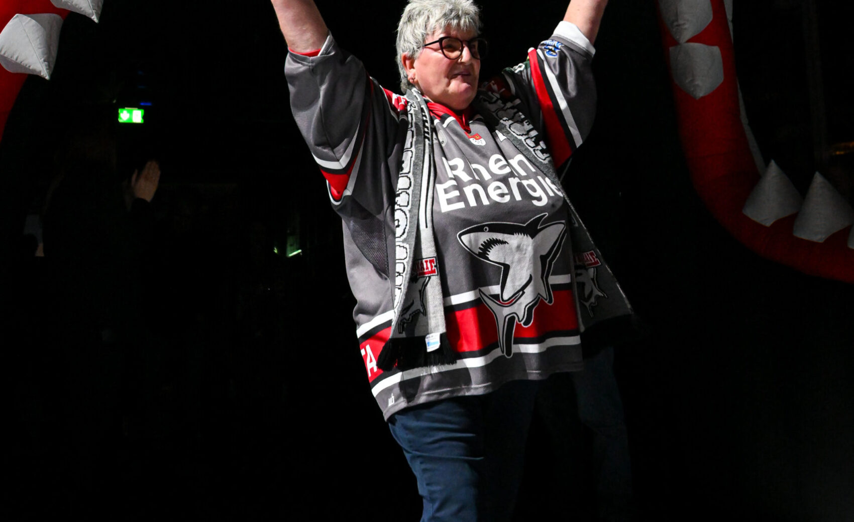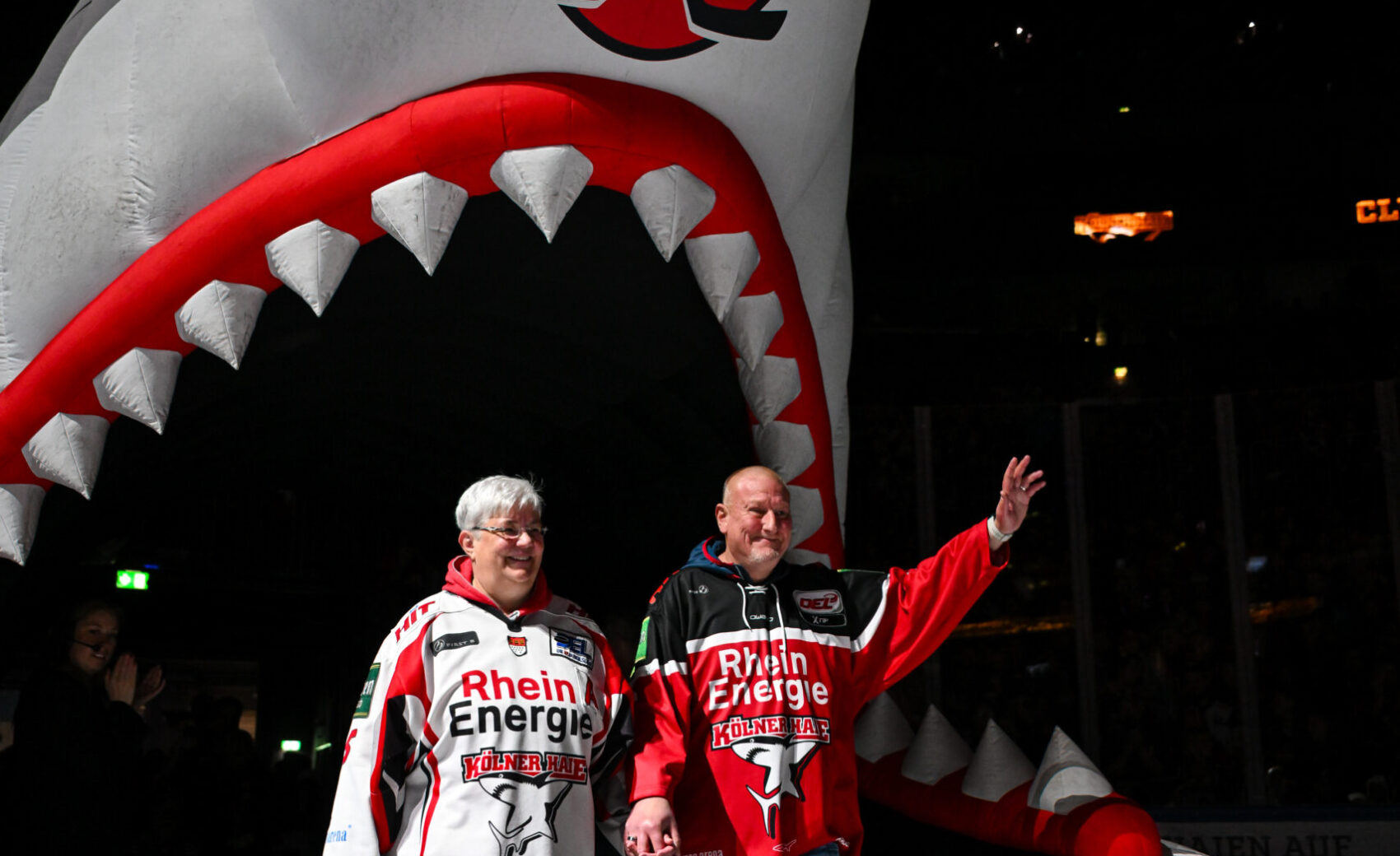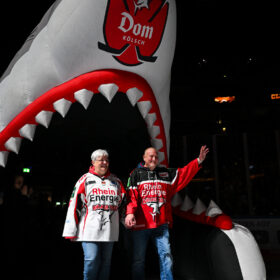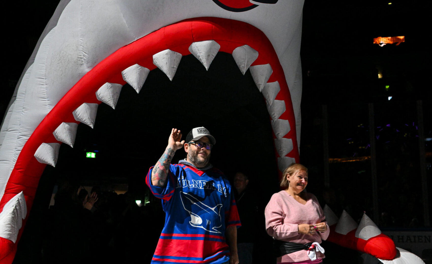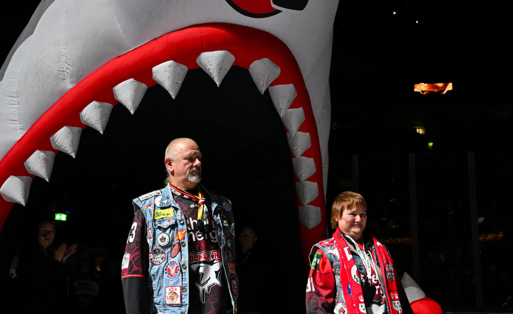 Insgesamt 56 goldene Haie wurden vor dem Heimspiel gegen Straubing geehrt und in den Club aufgenommen – darunter gleich sechs Ehepaare sowie ein Vater mit seinem Sohn. Zudem sind sechs Haie-Fans vom Fanclub Stachel aus Bonn nun goldene Haie. Nicht zu vergessen ist an dieser Stelle auch Kriemhilde Scholz, die nicht nur seit mehr als 25 Jahren im Besitz einer Dauerkarte ist, sondern die Haie tatkräftig auf der Geschäftsstelle unterstützt. Wir sagen: Danke für eure Treue – und Willkommen im Club!