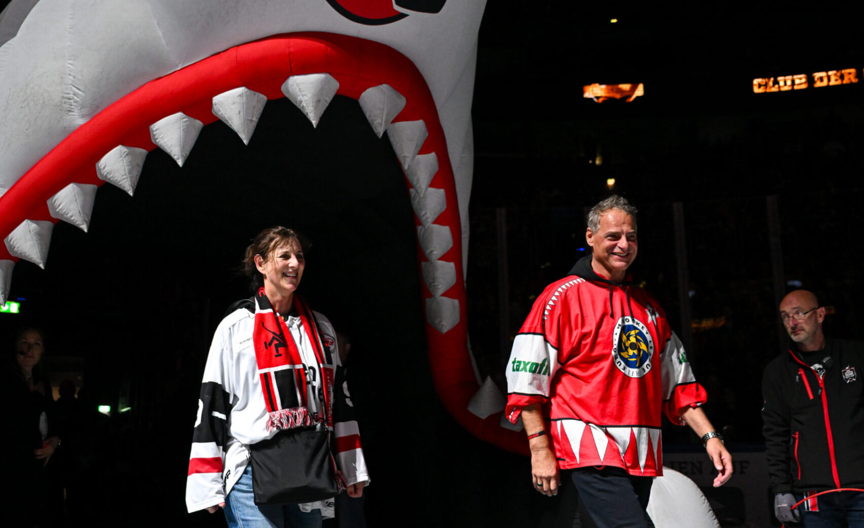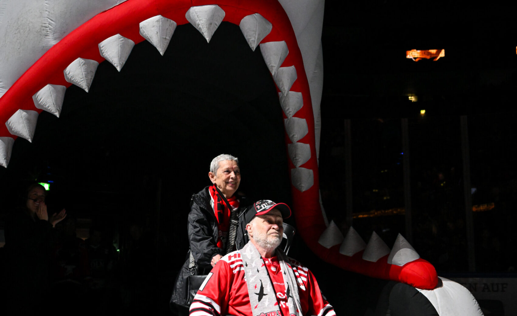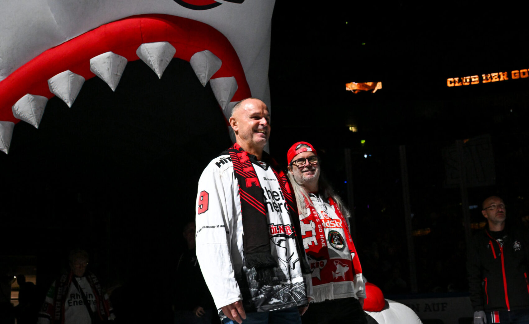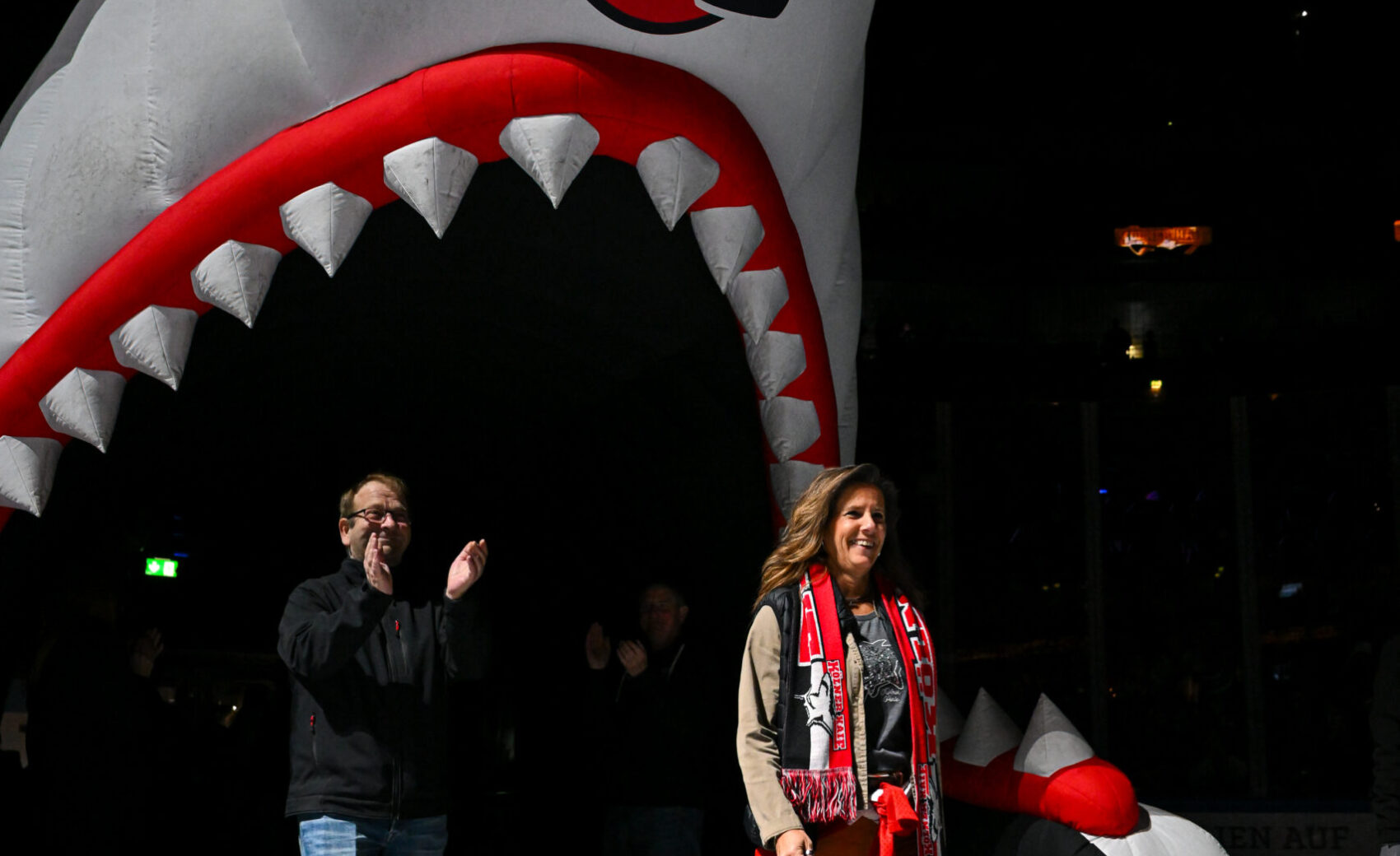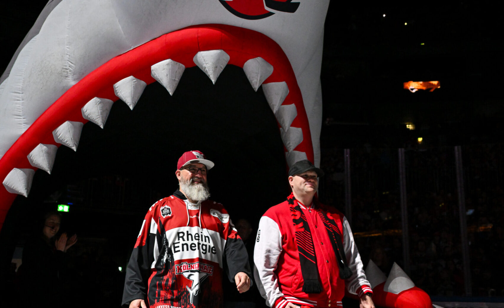 Insgesamt 56 goldene Haie wurden vor dem Heimspiel gegen Straubing geehrt und in den Club aufgenommen – darunter gleich sechs Ehepaare sowie ein Vater mit seinem Sohn. Zudem sind sechs Haie-Fans vom Fanclub Stachel aus Bonn nun goldene Haie. Nicht zu vergessen ist an dieser Stelle auch Kriemhilde Scholz, die nicht nur seit mehr als 25 Jahren im Besitz einer Dauerkarte ist, sondern die Haie tatkräftig auf der Geschäftsstelle unterstützt. Wir sagen: Danke für eure Treue – und Willkommen im Club!