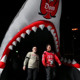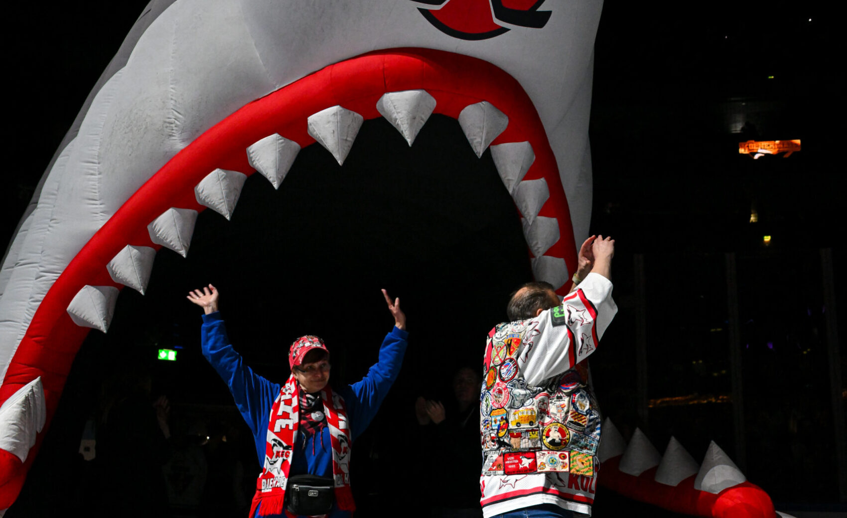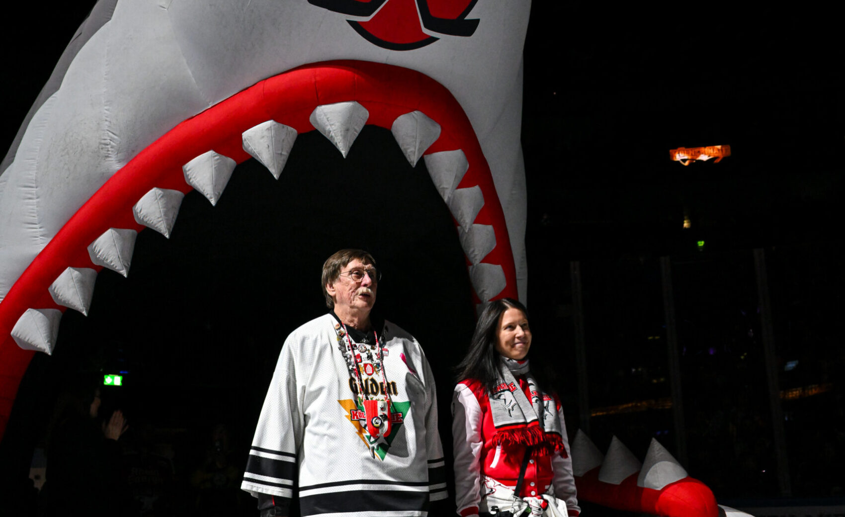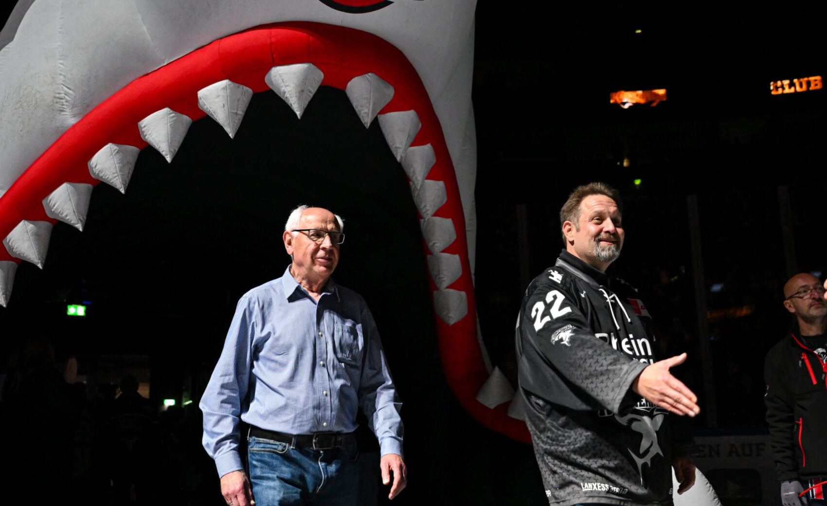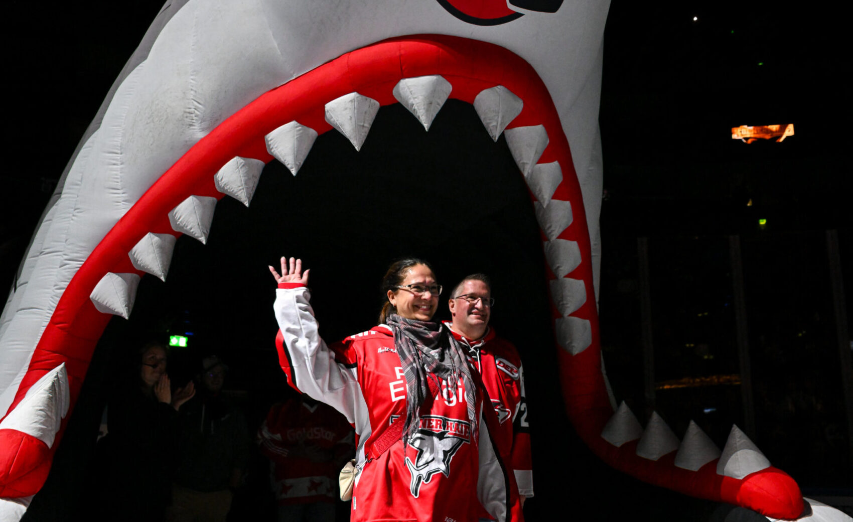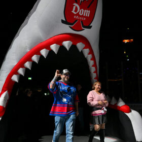 Insgesamt 56 goldene Haie wurden vor dem Heimspiel gegen Straubing geehrt und in den Club aufgenommen – darunter gleich sechs Ehepaare sowie ein Vater mit seinem Sohn. Zudem sind sechs Haie-Fans vom Fanclub Stachel aus Bonn nun goldene Haie. Nicht zu vergessen ist an dieser Stelle auch Kriemhilde Scholz, die nicht nur seit mehr als 25 Jahren im Besitz einer Dauerkarte ist, sondern die Haie tatkräftig auf der Geschäftsstelle unterstützt. Wir sagen: Danke für eure Treue – und Willkommen im Club!