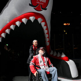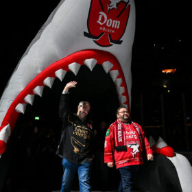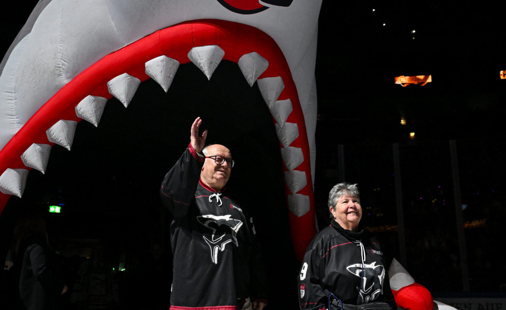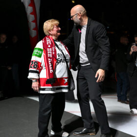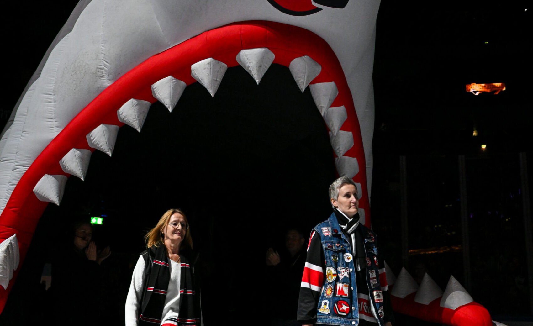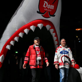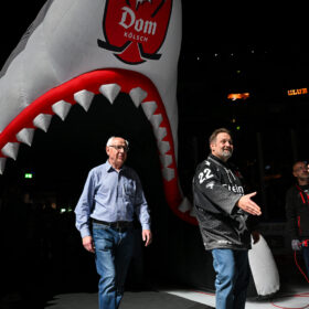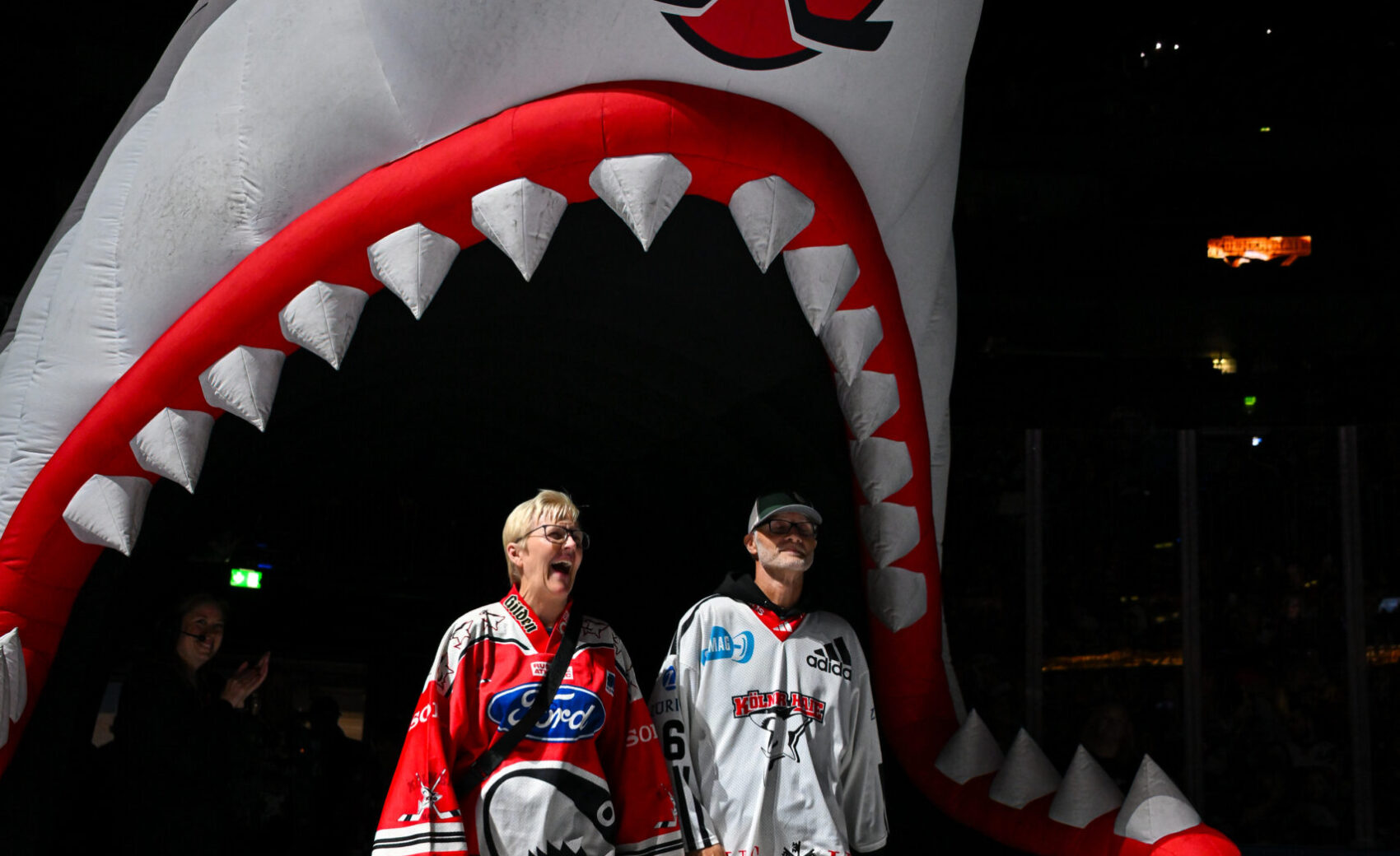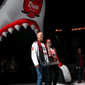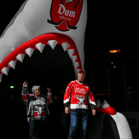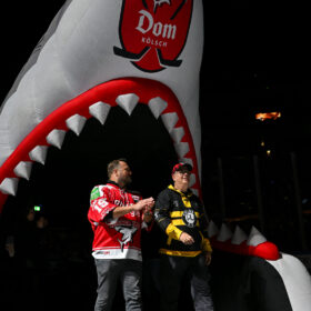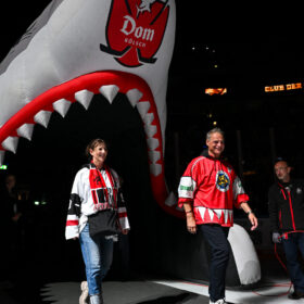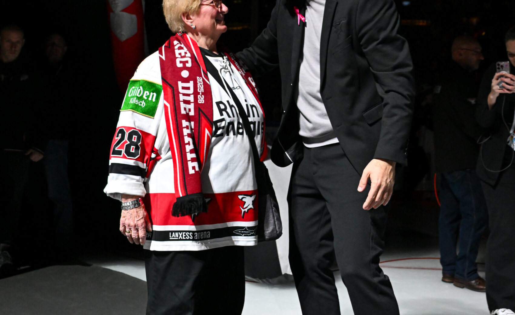 Insgesamt 56 goldene Haie wurden vor dem Heimspiel gegen Straubing geehrt und in den Club aufgenommen – darunter gleich sechs Ehepaare sowie ein Vater mit seinem Sohn. Zudem sind sechs Haie-Fans vom Fanclub Stachel aus Bonn nun goldene Haie. Nicht zu vergessen ist an dieser Stelle auch Kriemhilde Scholz, die nicht nur seit mehr als 25 Jahren im Besitz einer Dauerkarte ist, sondern die Haie tatkräftig auf der Geschäftsstelle unterstützt. Wir sagen: Danke für eure Treue – und Willkommen im Club!