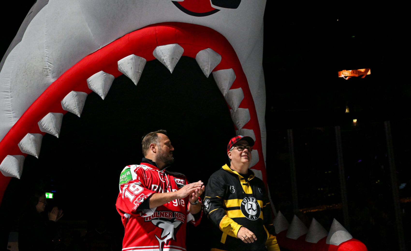 Vor unserem spektakulären Heimspiel gegen die Straubing Tigers (7:4) hatten Haie-Geschäftsführer Philipp Walter, KEC-Legende Mirko Lüdemann sowie der ehemalige Haie-Spieler Torsten Ankert die Ehre, neue Mitglieder in den Club aufzunehmen.