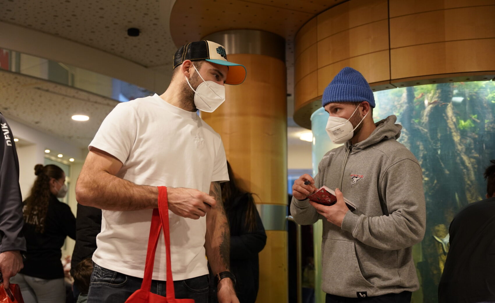 Gut eine Stunde lang zogen die Gruppen durch das Haus. Da so viele Taschen von euch Haie-Fans erworben wurden, konnten nicht alle persönlich übergeben werden – einige Beutel blieben auf den Stationen und werden nun nach und nach an die Kinder verteilt.
