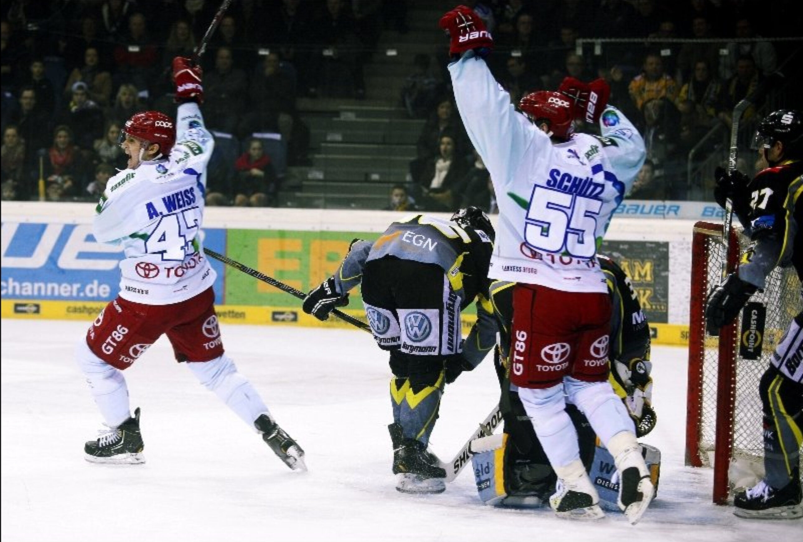 Das war der dritte Auswärtssieg in Folge! Der KEC siegte am Freitag beim KEV mit 4:2. Durch den erneuten Erfolg ist den Haien das Heimrecht im Viertelfinale nicht mehr zu nehmen.