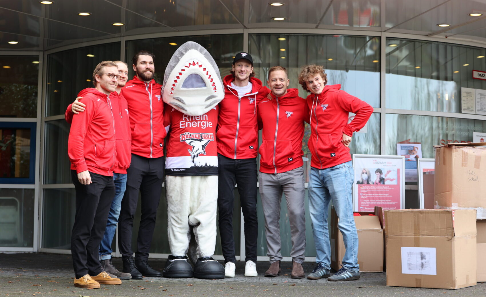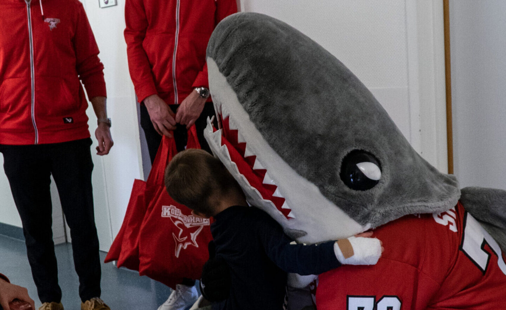 „Das werde ich nie vergessen, das war wunderschön!“ Sätze, die man sehr, sehr gerne hört – besonders, wenn sie von Kindern kommen, die dabei ein kleines Leuchten in ihren Augen haben. Wir waren am Dienstagnachmittag mit sechs unserer Spieler und mit Akteuren des 1. FC Köln im Kinderkrankenhaus an der Amsterdamer Strae und durften dort dank eurer Hilfe die von euch erworbenenen Charity-Taschen mit vielen groartigen Haie-Fanartikeln verteilen. Dass dabei niemand Geringeres als Sharky Mo Müller, Alexandre Grenier, Tim Wohlgemuth und Co. begleitete, setzte dem schönen und berührenden Nachmittag die Krone auf.