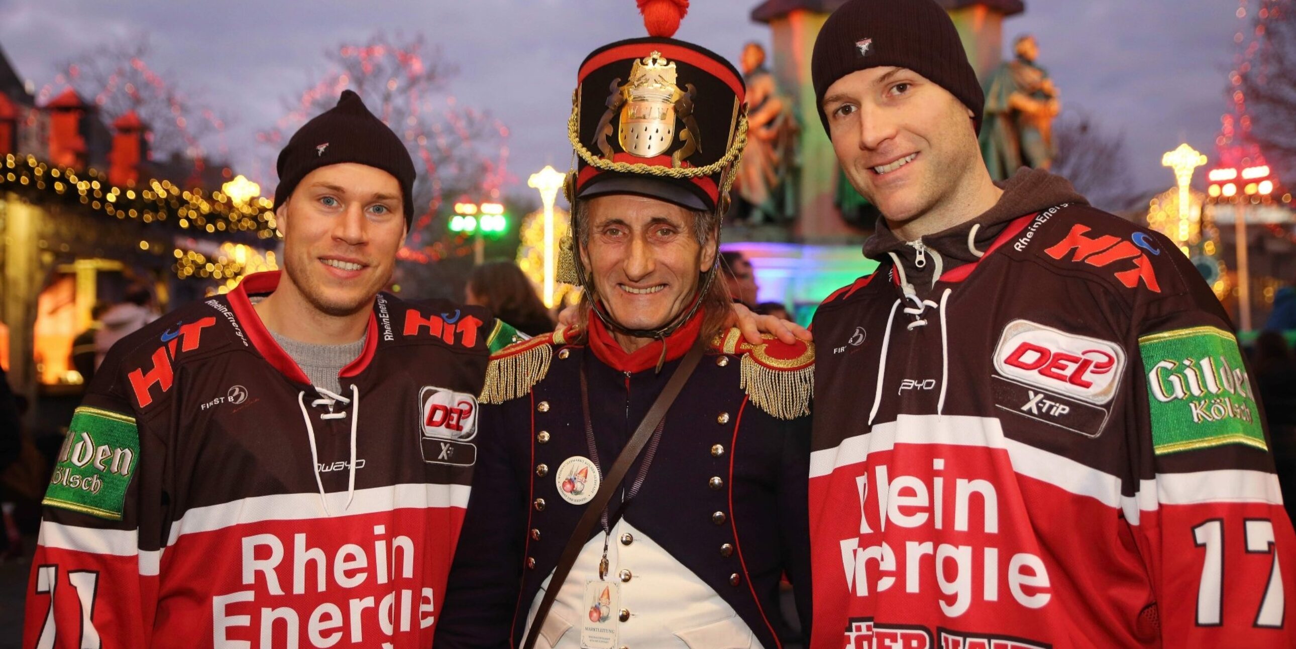 In der Weihnachtszeit packen die Haie-Profis traditionell auch neben dem Eis mit an – und das für den guten Zweck. Jetzt schlug wieder die „Haie-Stunde“ auf dem Weihnachtsmarkt auf dem Heumarkt in der Kölner Altstadt.