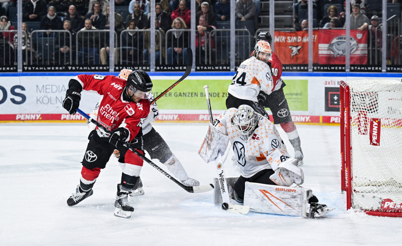 - 0:28 Minuten Einsatzzeit – Ex-Hai Julian Chrobot verletzte sich in seinem ersten Shift und musste nach nicht einmal einer halben Minute Eiszeit das Spiel verlassen, gute Besserung an dieser Stelle