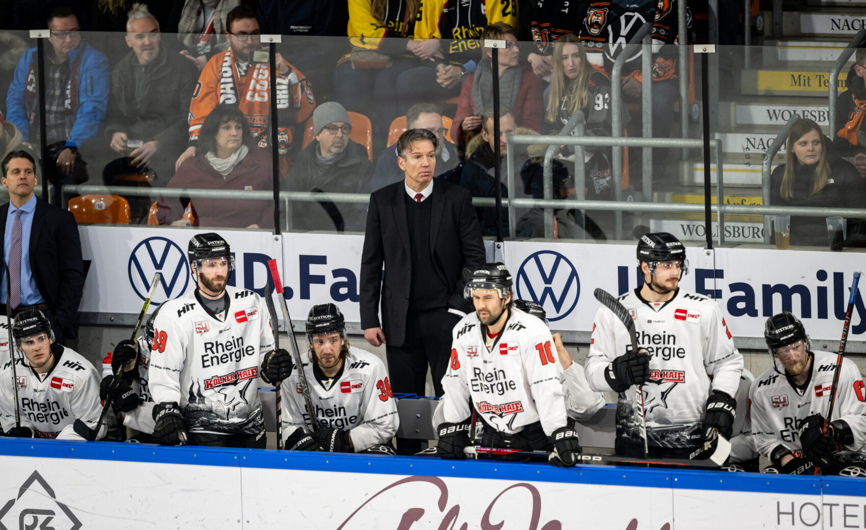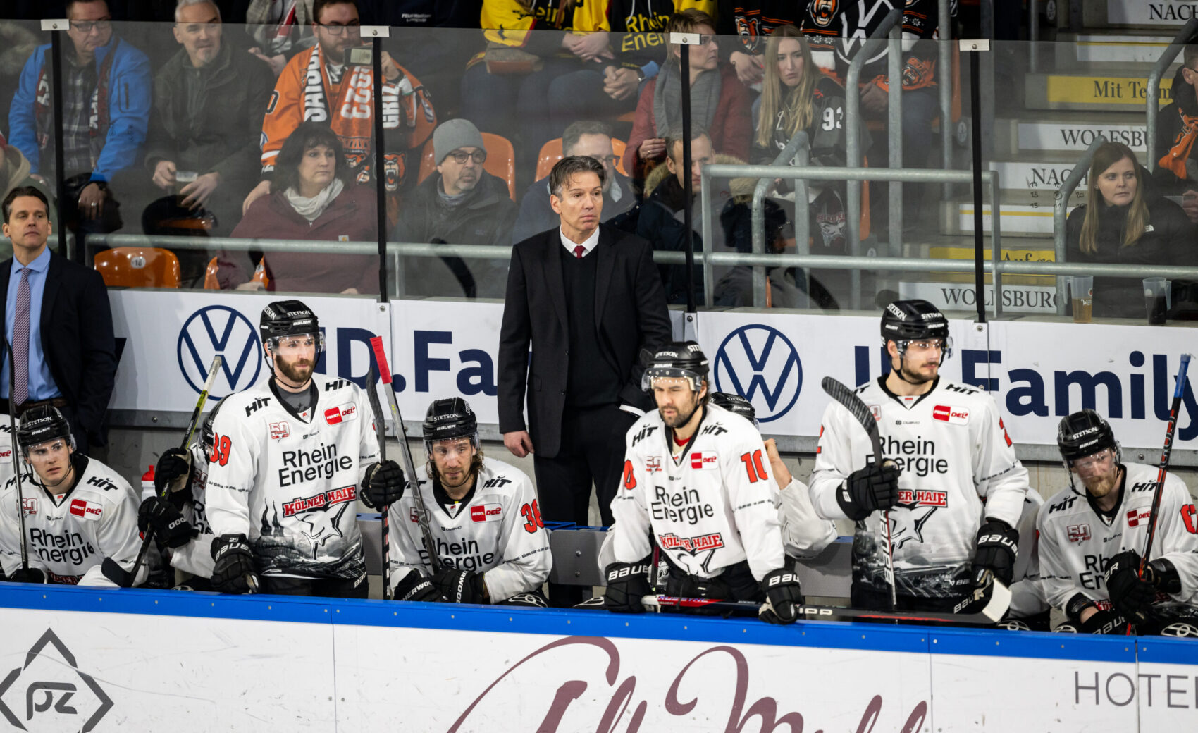 Nicht aber an diesem Freitagabend in der niedersächsischen Autostadt – Machacek stand nach einem Abpraller goldrichtig im Slot und machte mit dem 2:0 den Deckel auf die Partie (56.). Zwar gaben die Haie zu keinem Zeitpunkt der Partie auf und hatten in den Schlussminuten mehrere gute Gelegenheiten zum Anschlusstreffer, doch die Wolfsburger um Goalie Dustin Strahlmeier waren an diesem Abend nicht zu überwinden. Solche Spiele – auch wenn sie wehtun – gehören leider dazu.