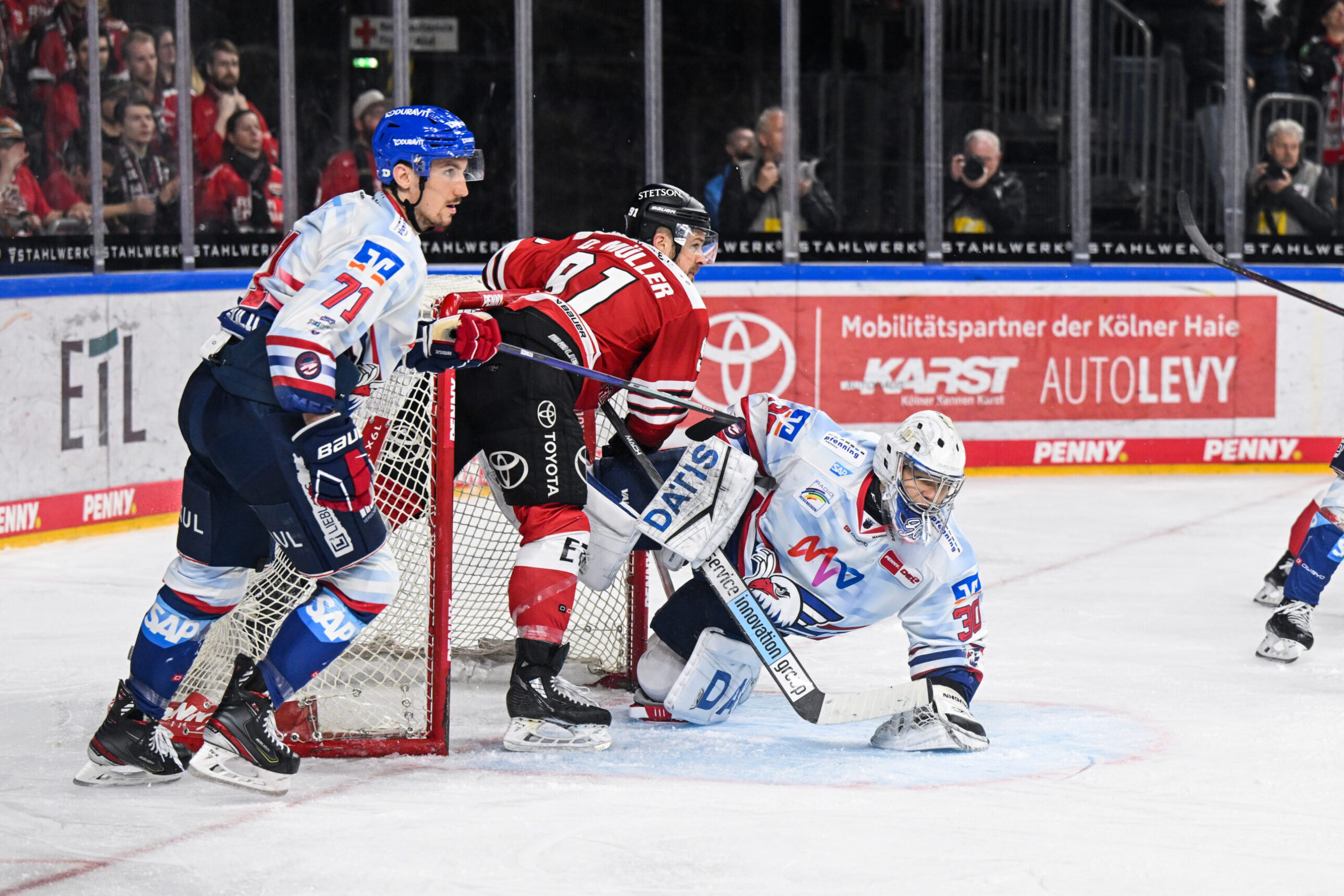 In diesen versuchten die Haie – angefeuert vom Kölner Publikum – alles, doch die Scheibe wollte nicht mehr rein. Kurz vor Schluss zog Krupp Mirko Pantkowski, doch auch mit einem Mann mehr auf dem Eis kamen die Haie zu keinem Treffer mehr. Somit musste der KEC nach einmal mehr tollen 60 Eishockey-Minuten in eine knappe und bittere 2:3-Niederlage einwilligen.