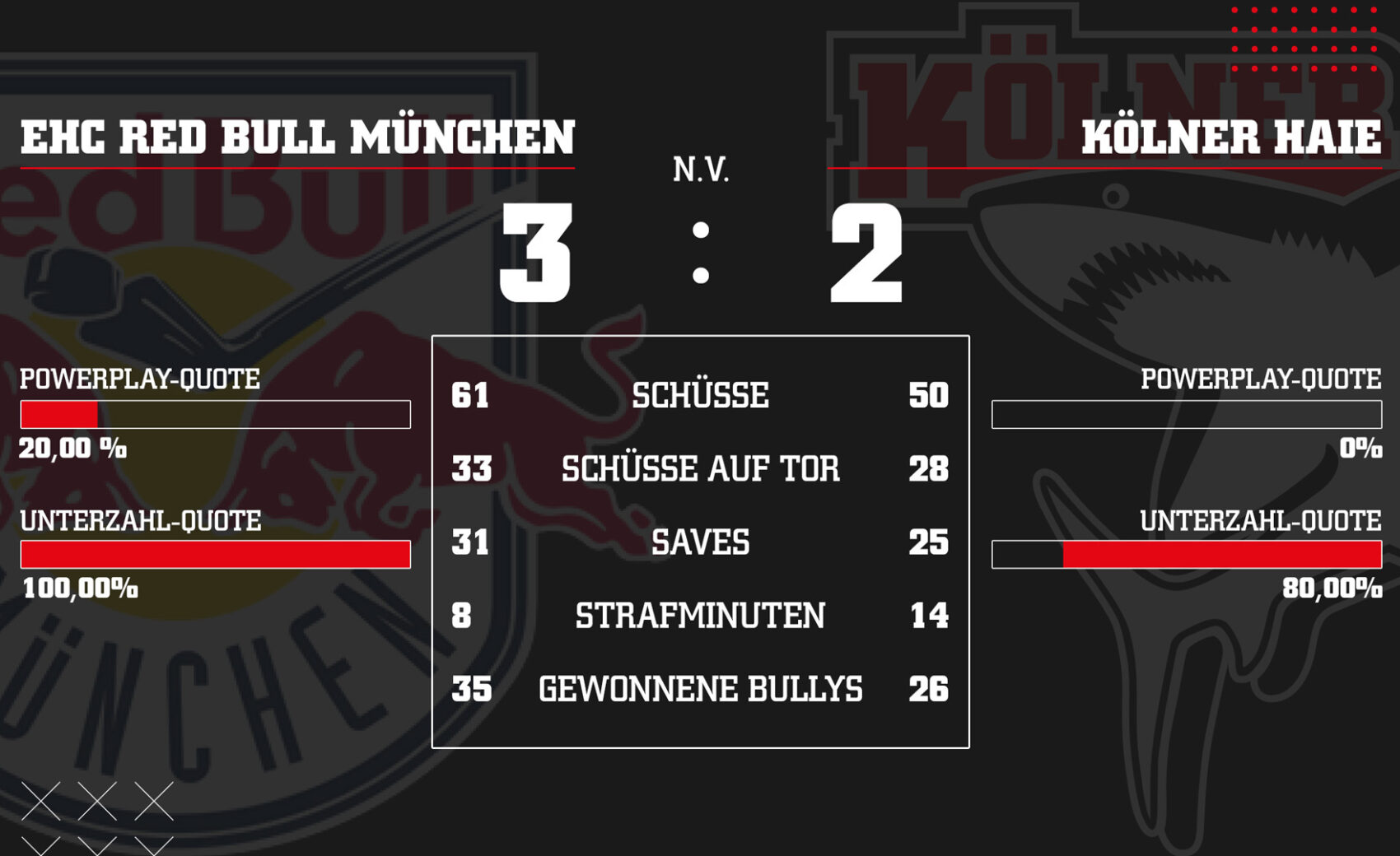 - Die Münchner bewiesen ihre Stärke beim Bully als bestes Bully-Team der Liga und konnten 35 von 61 Duellen für sich entscheiden