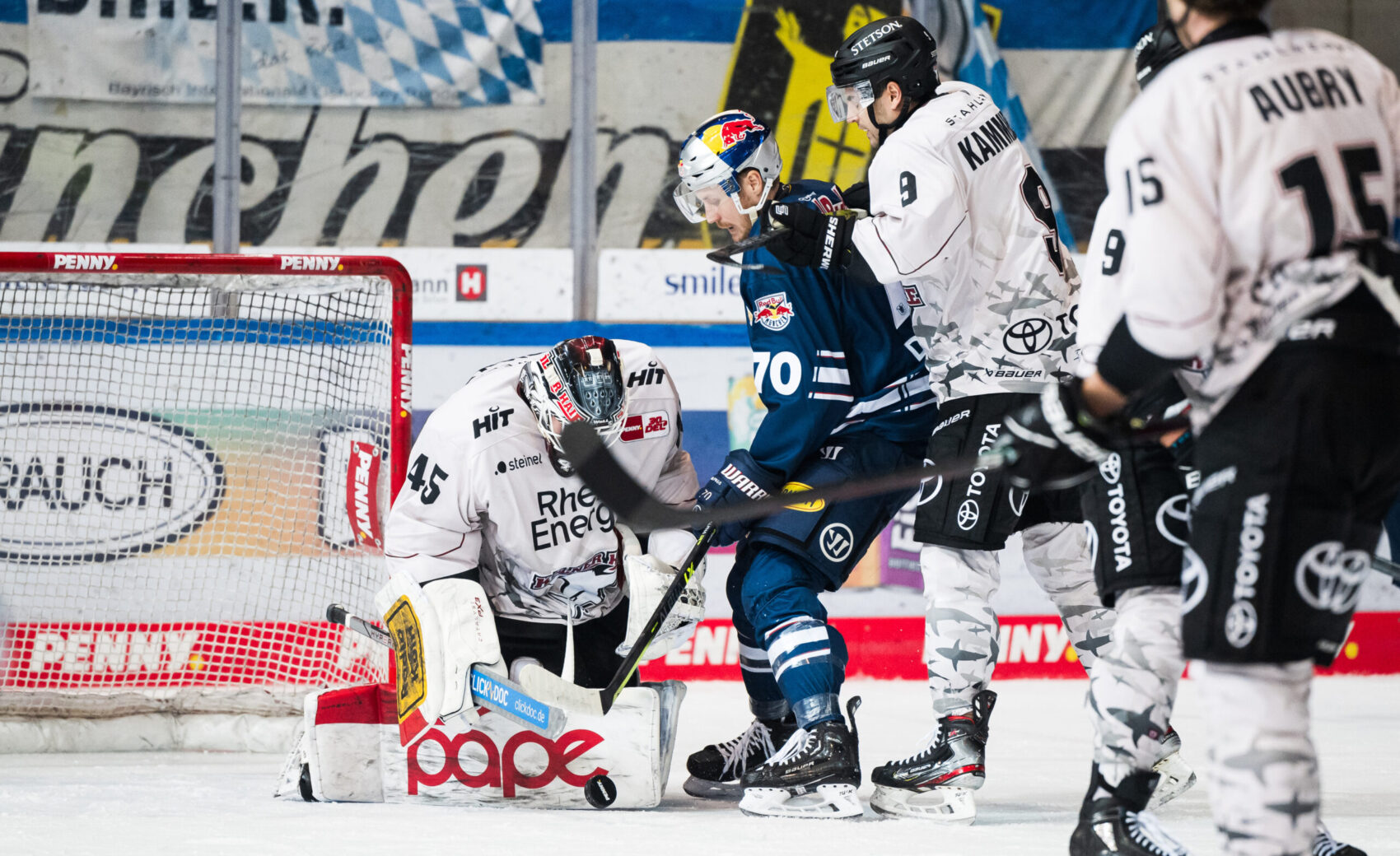 Bis zum Schluss der regulären Spielzeit blieb die Partie mit Playoff-Charakter eng – hatten wir in der ersten Hälfte des Schlussabschnitts mehr vom Spiel und gute Chancen durch Brady Austin, Justin Schütz (jeweils 45.) und Jason Bast (50.), kam der amtierende Deutsche Meister zum Ende hin mehr auf und war dem Siegtreffer in mehreren Situationen sehr nahe. Die beste Chance hatte Ortega nach Zuspiel DeSousas, doch Münchens Nummer acht setzte die Scheibe nicht ins Tor, sondern an den Pfosten.