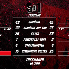 Nur 51 Sekunden später erhöhten die Gastgeber auf 4:1, Liam Kirk kam nach feinem Diagonalpass durch den Slot etwas zu leicht zum Schuss (51.), Leonhard Pföderl hatte in einem abwechslungsreichen Spiel mit seinem finalen Treffer zum 5:1 (56.) nach Vorarbeit seiner Reihenpartner Ty Ronning und Frederik Tiffels das letzte Wort.