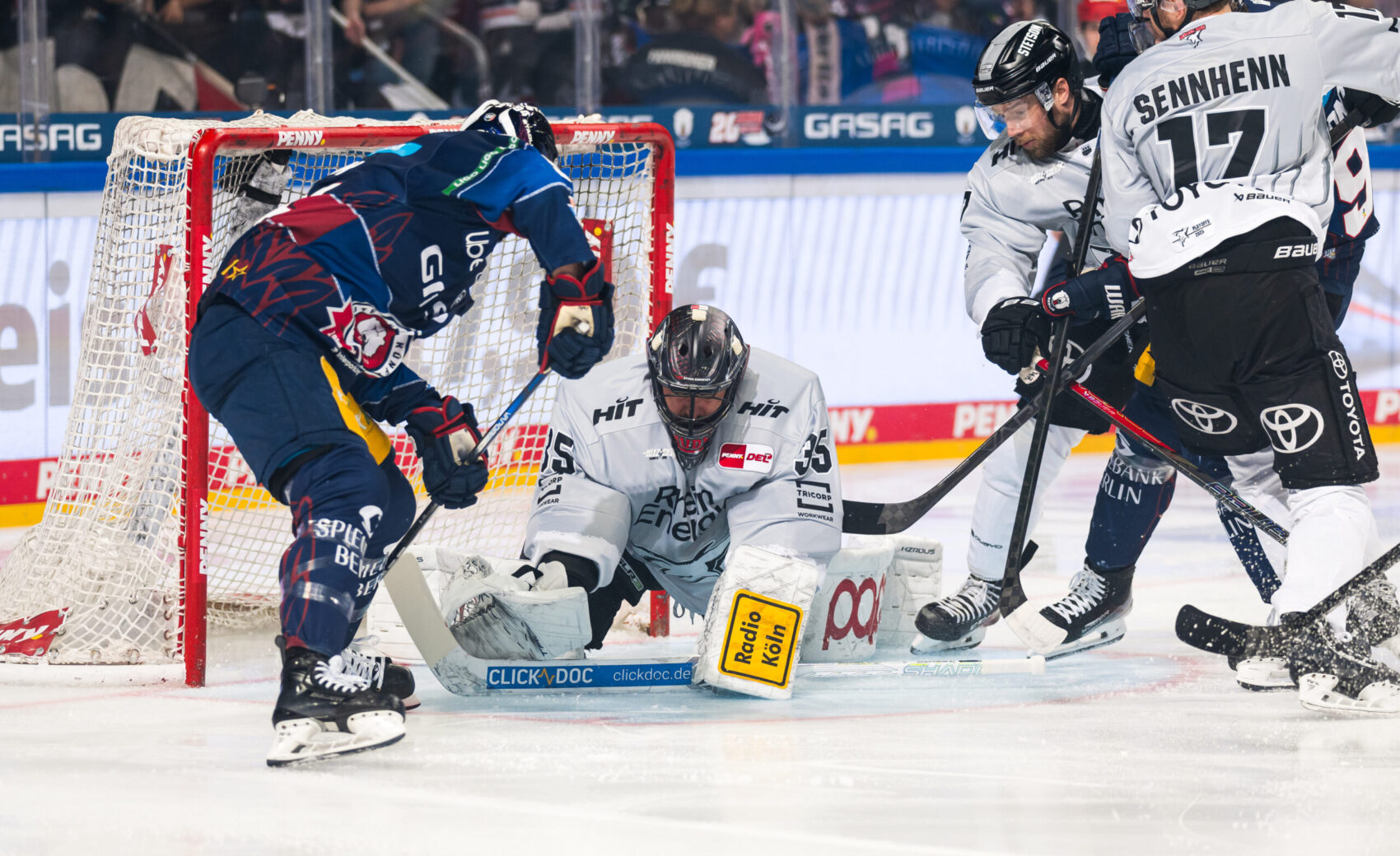 Tyrväinen war auch an der nächsten guten Offensivaktion von uns beteiligt. Hinter dem Tor wurde Frederik Storm von Kammerer bedient und zog nach vorne in den Slot, wo er Hildebrand mit einem Versuch aus spitzem Winkel prüfte, der Abpraller landete bei Tyrväinen, der abermals am Eisbären-Torhüter scheiterte (9.). Auch wenn wir vorne immer wieder zu guten Chancen kamen, mussten wir bei den Offensivaktionen der Berliner hellwach sein. Immer wieder kamen die Gastgeber über auen mit Geschwindigkeit und versuchten im Slot zu vollenden. Hudacek war bei den Versuchen von Frederik Tiffels (12.), Yannick Veilleux (14.) und Ty Ronning (18.) aber hellwach. Daher blieb es nach 20 Minuten bei der knappen 1:0-Führung für die Eisbären Berlin.