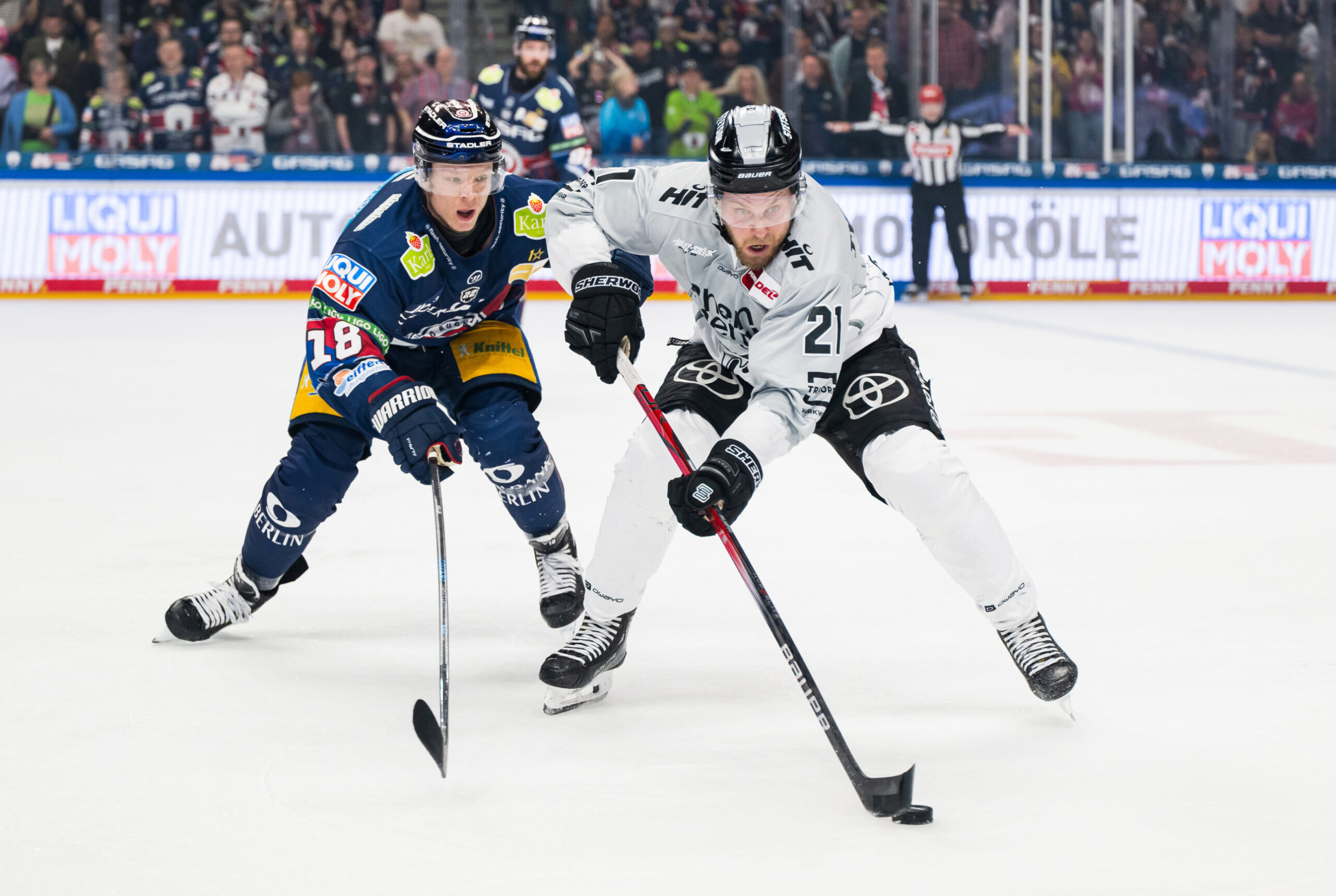 Wir müssen in Spiel 1 der Finalserie gegen die Eisbären Berlin in eine 1:5-Niederlage einwilligen. Bis tief ins dritte Drittel können wir die Partie gegen den amtierenden Deutschen Meister offen halten, dann schlagen die Berliner binnen sechs Minuten dreimal zu und ziehen weg. Alexandre Grenier erzielt im zweiten Drittel den zwischenzeitlichen Ausgleich – wir haben den Spielbericht.