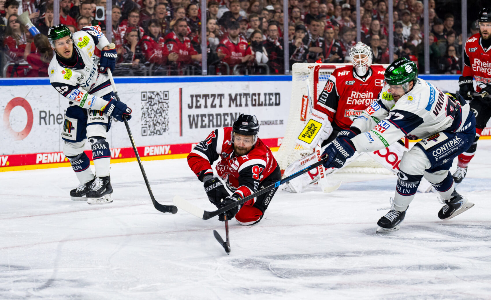 Eine besondere Saison endet mit einer 1:4-Niederlage in Spiel 6 des Halbfinals. Durch den Sieg am Montagabend in der erneut ausverkauften LANXESS Arena stellt Berlin die „Best-of-Seven“-Serie auf 4:2 und zieht damit ins Finale ein. Zwei späte Treffer ins Empty Net entscheiden die Partie zugunsten der Hauptstädter. Wir haben den Spielbericht.