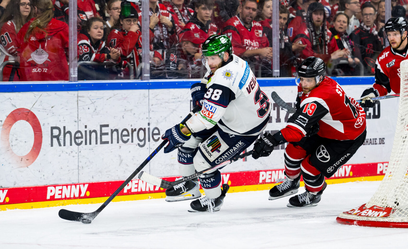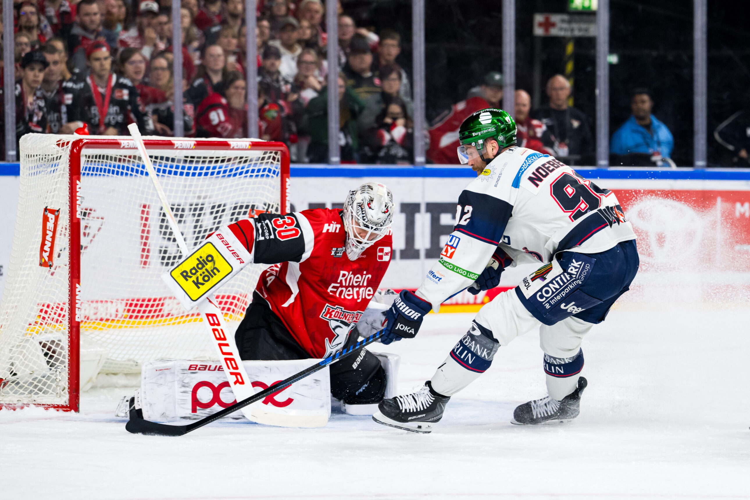 Angetrieben vom Groteil der 18.600 Zuschauer in einer stimmungsvollen LANXESS Arena bot sich uns kurz darauf die groe Chance zum Ausgleich. Nach zwei Berliner Strafzeiten standen wir für knapp eine Minute in doppelter Überzahl auf dem Eis. Weder das 5-gegen-3 noch die anschlieende einfache Überzahl konnten wir jedoch nutzen, um den Ausgleich zu erzielen. So ging es nach 20 intensiven Minuten mit einer knappen Berliner Führung in die erste Drittelpause.