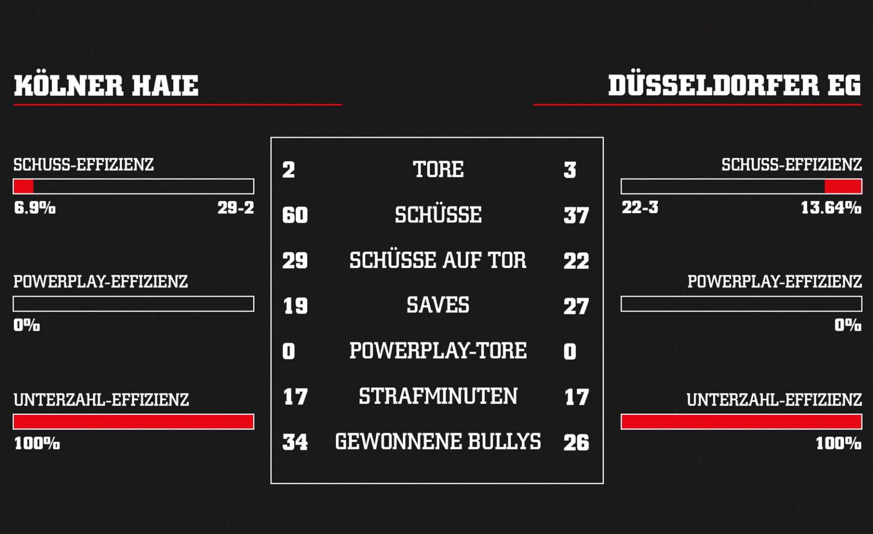 - 60 KEC-Schüsse: Statistisch gesehen zogen die Haie jede Minute des Derbys ab, jedoch fanden nur knapp die Hälfte der Schüsse, nämlich 29, den Weg Richtung Tor.