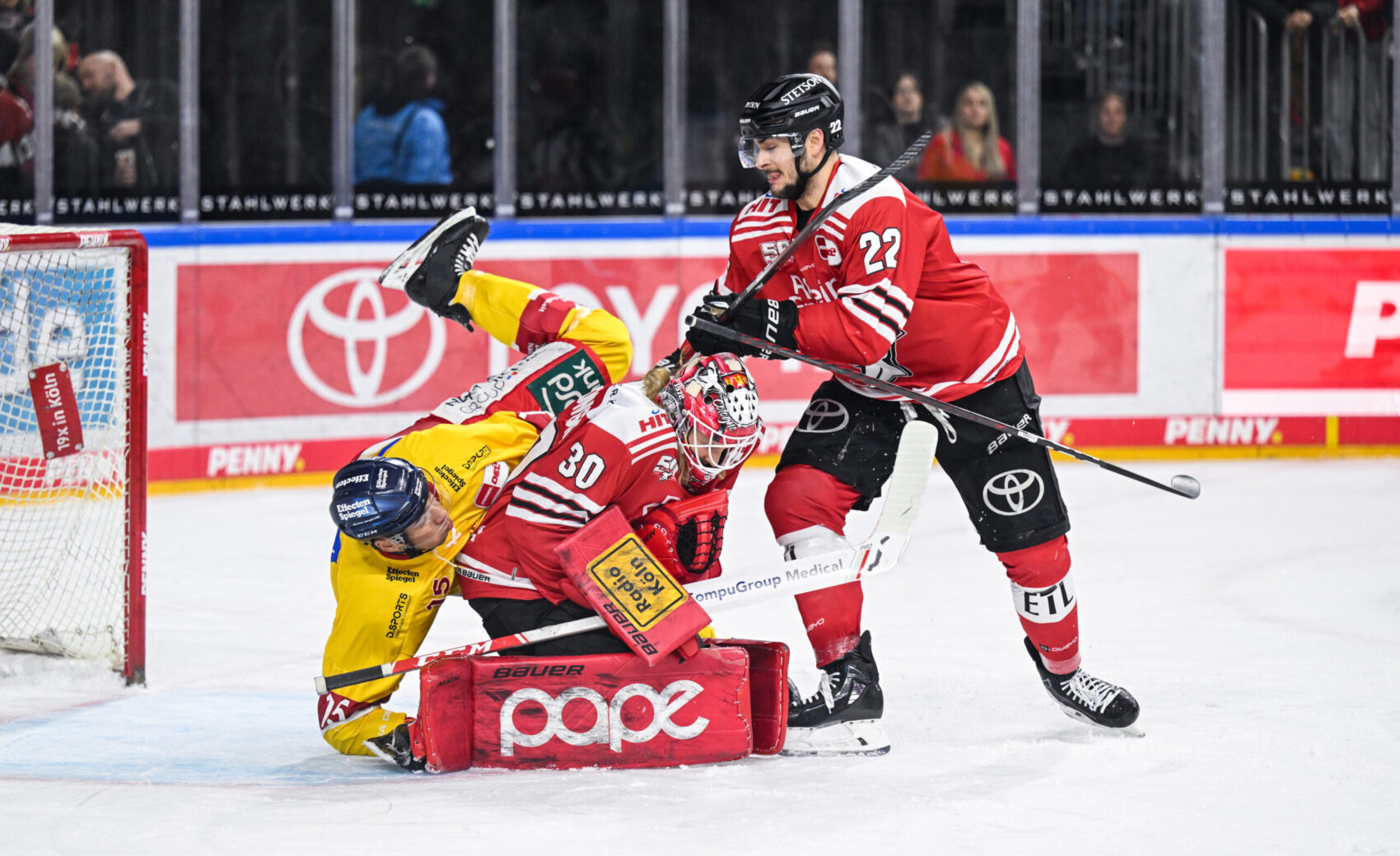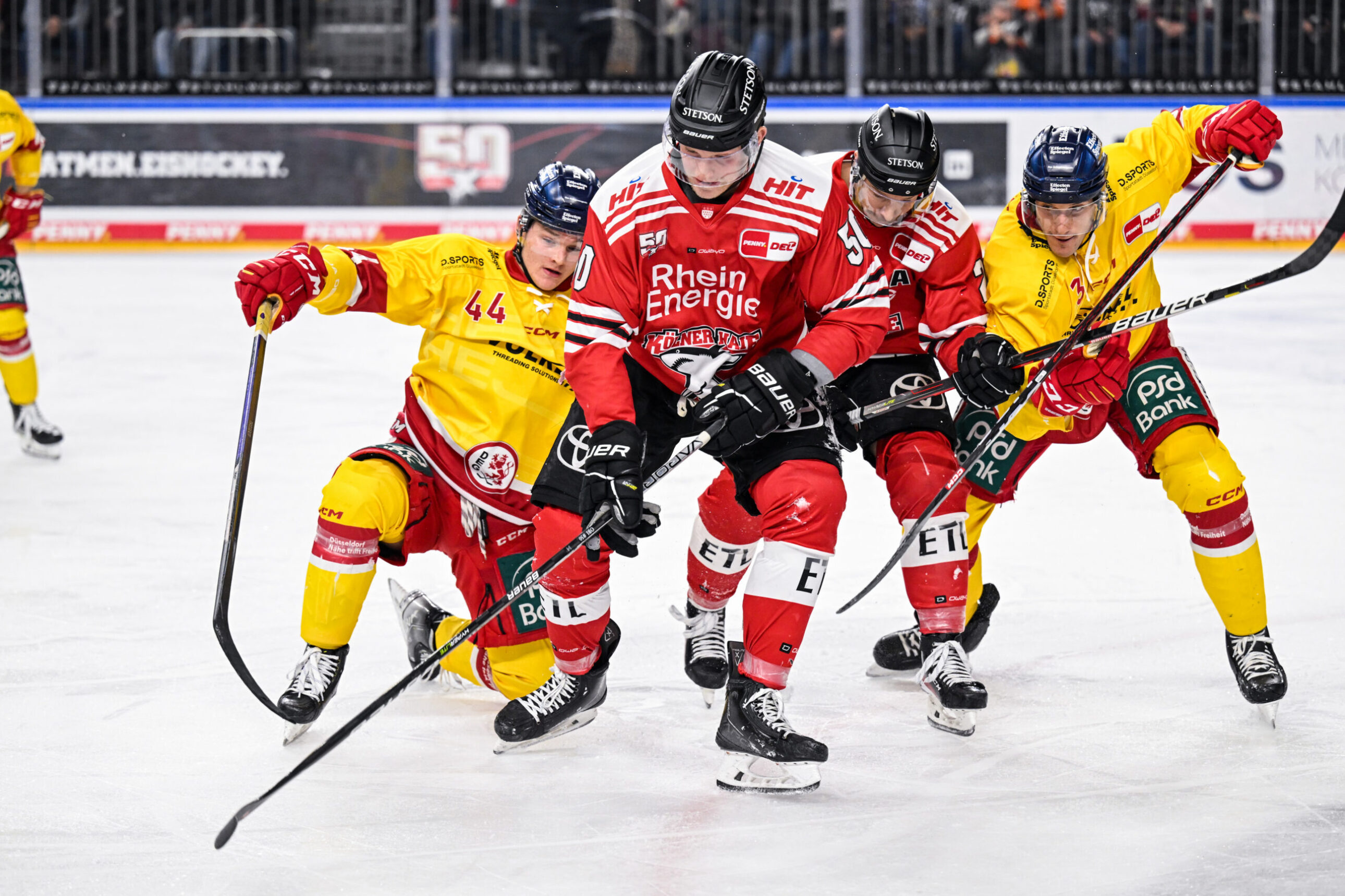 Trotz einer frühen Führung müssen sich die Haie am Ende eines intensiven Derbys der Düsseldorfer EG mit 2:3 (1:0/1:3/0:0) geschlagen geben. Im insgesamt 237. Duell zwischen Kölner Haien und der DEG ging es wie immer leidenschaftlich her, am Ende bringen die Gäste den knappen Sieg gegen sich nicht aufgebende Haie auch dank eines starken Goalies nach Hause.