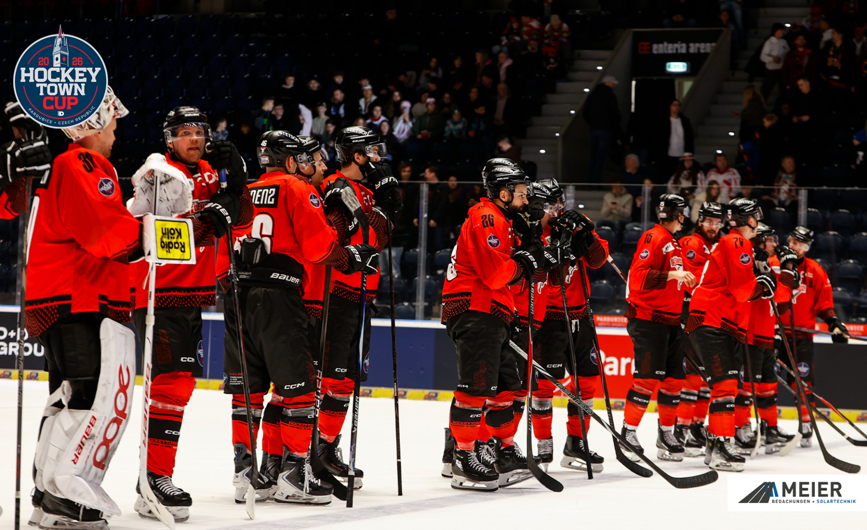 Im ersten Halbfinale des erstmalig stattfindenden Hockeytown Cups unterliegt unsere Mannschaft dem Schweizer Team vom SC Bern mit 1:2 nach Verlängerung. Für unser Team war Nate Schnarr als einziger Torschütze erfolgreich. Durch die Niederlage geht es für uns am Sonntag, den 15. Februar mit dem Spiel um Platz 3 weiter. Um 14:00 Uhr treffen wir im tschechischen Pardubice dann auf den Verlierer des Duells zwischen den Gastgebern und den Straubing Tigers.