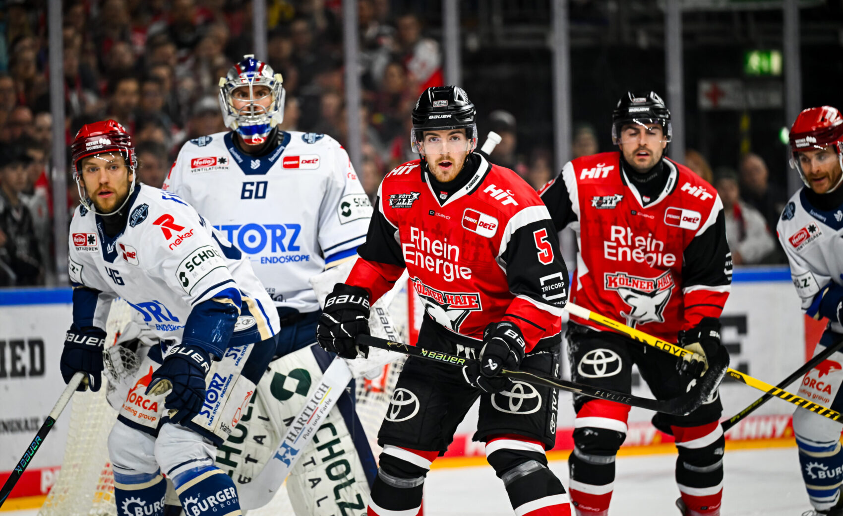 Von der ersten Sekunde an war Viertelfinale Spiel 4 im ausverkauften Haifischbecken ein echtes Playoff-Ringen: intensiv, körperlich und geprägt von zwei herausragenden Torhütern. Im Startdrittel kamen wir früh zu Abschlüssen über MacLeod, Russell, Bokk und Kaski, während Janne Juvonen mehrfach stark gegen die schnellen Abschlüsse der Gäste parierte. Nach beidseitigen Strafen – darunter je fünf Minuten wegen „Fighting“ für Tyrväinen und Szwarz, sowie Niedenz und Weber – blieb die Partie zerfahren, aber stets mit hohem Tempo. Da Eriksson auf der Gegenseite ebenso aufmerksam blieb, ging es torlos in die erste Pause.