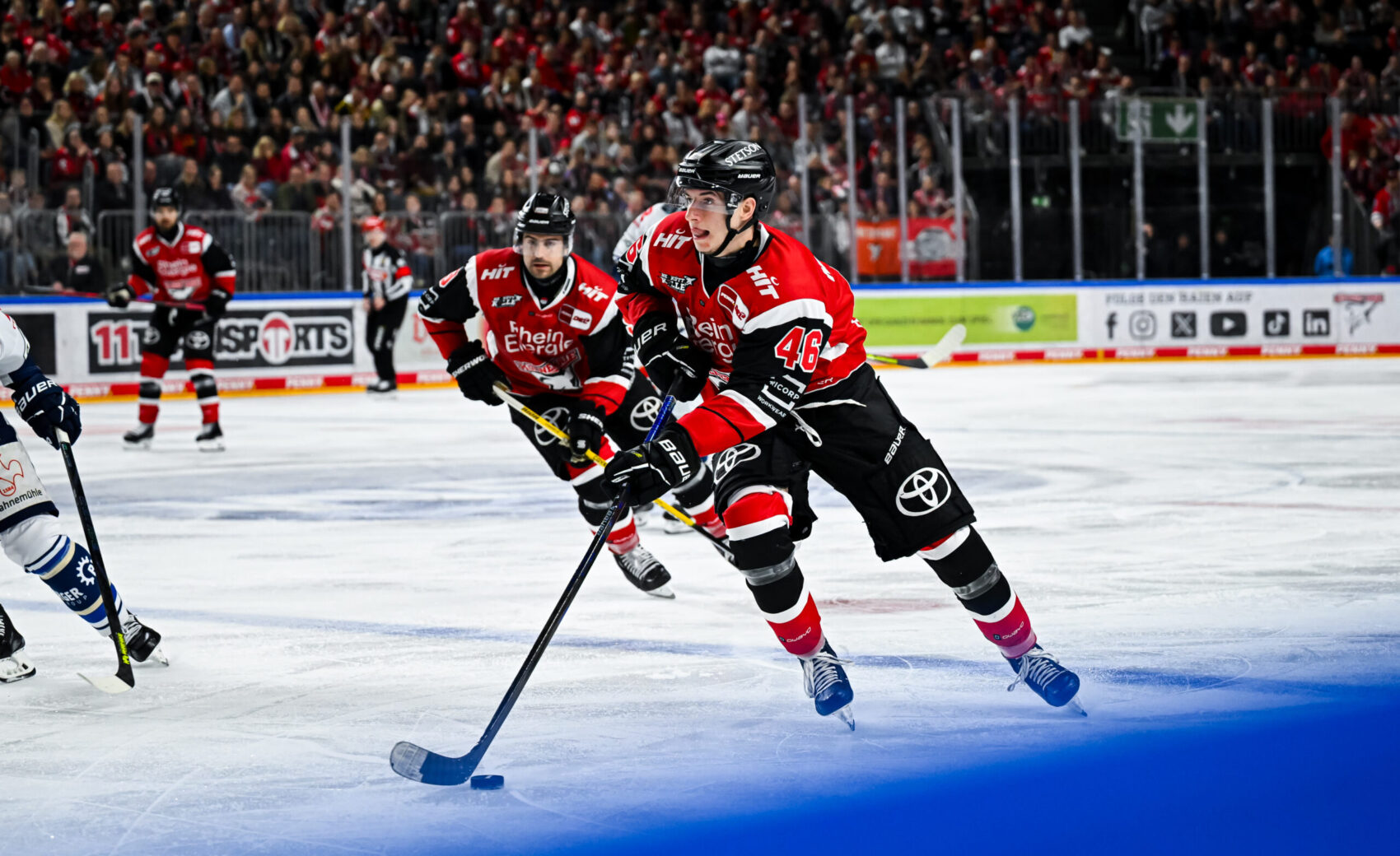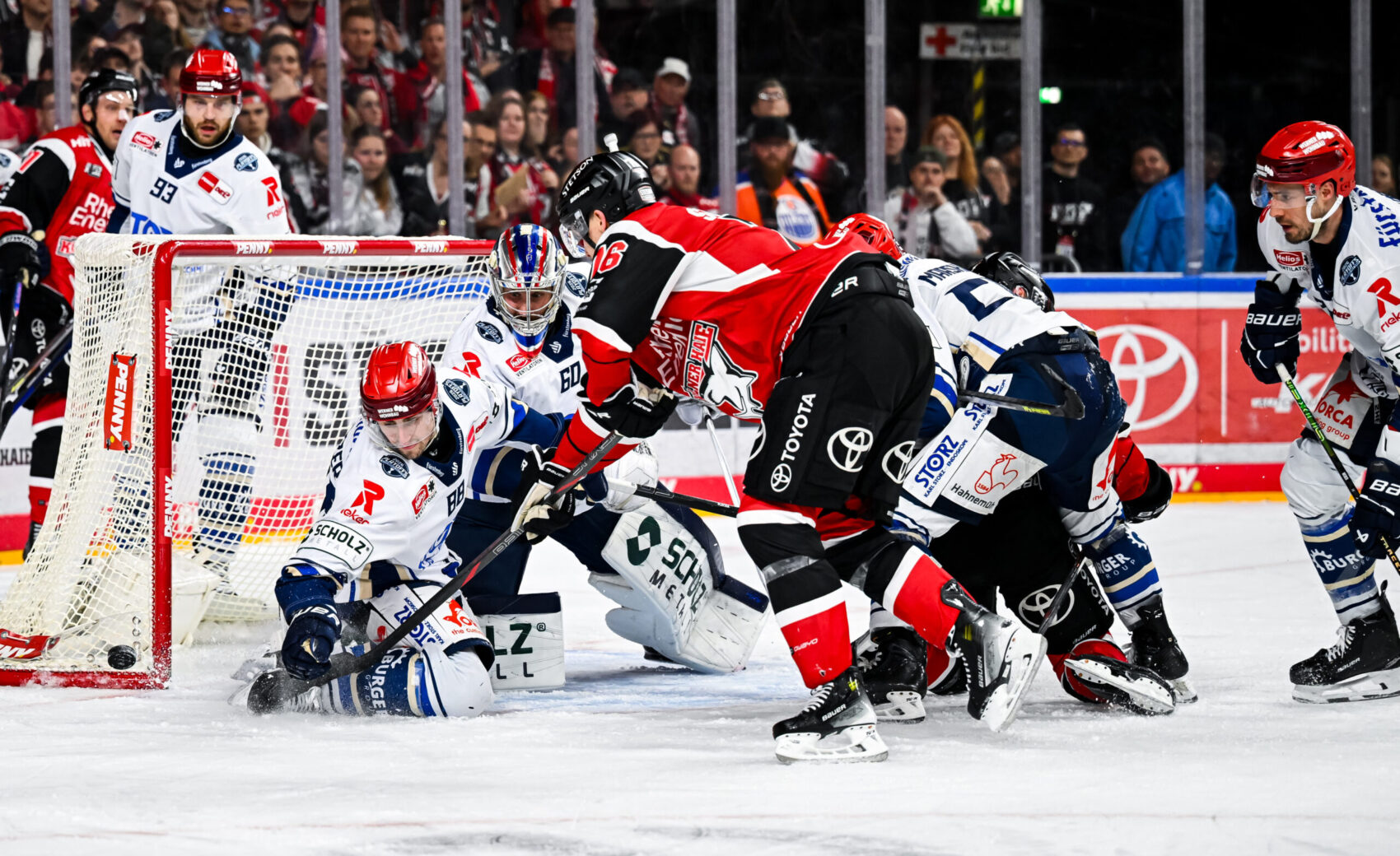 Im dritten Drittel stellten die Gäste das Spiel auf frühere und direktere Abschlüsse um. Juvonen parierte gegen Platzer und Karachun, Vittasmäki warf sich wie seine Kollegen in Schüsse, und wir setzten Nadelstiche über schnelle Umschaltmomente – unter anderem durch Kammerer und Schnarr. Schwenningen traf den Pfosten und erhöhte den Druck in den letzten Minuten, nahm schließlich den Torhüter vom Eis. Gut eine Minute vor Schluss fiel der Ausgleich: Höfflin traf aus dem linken Bullykreis, Juvonen war die Sicht versperrt – 1:1, Overtime.