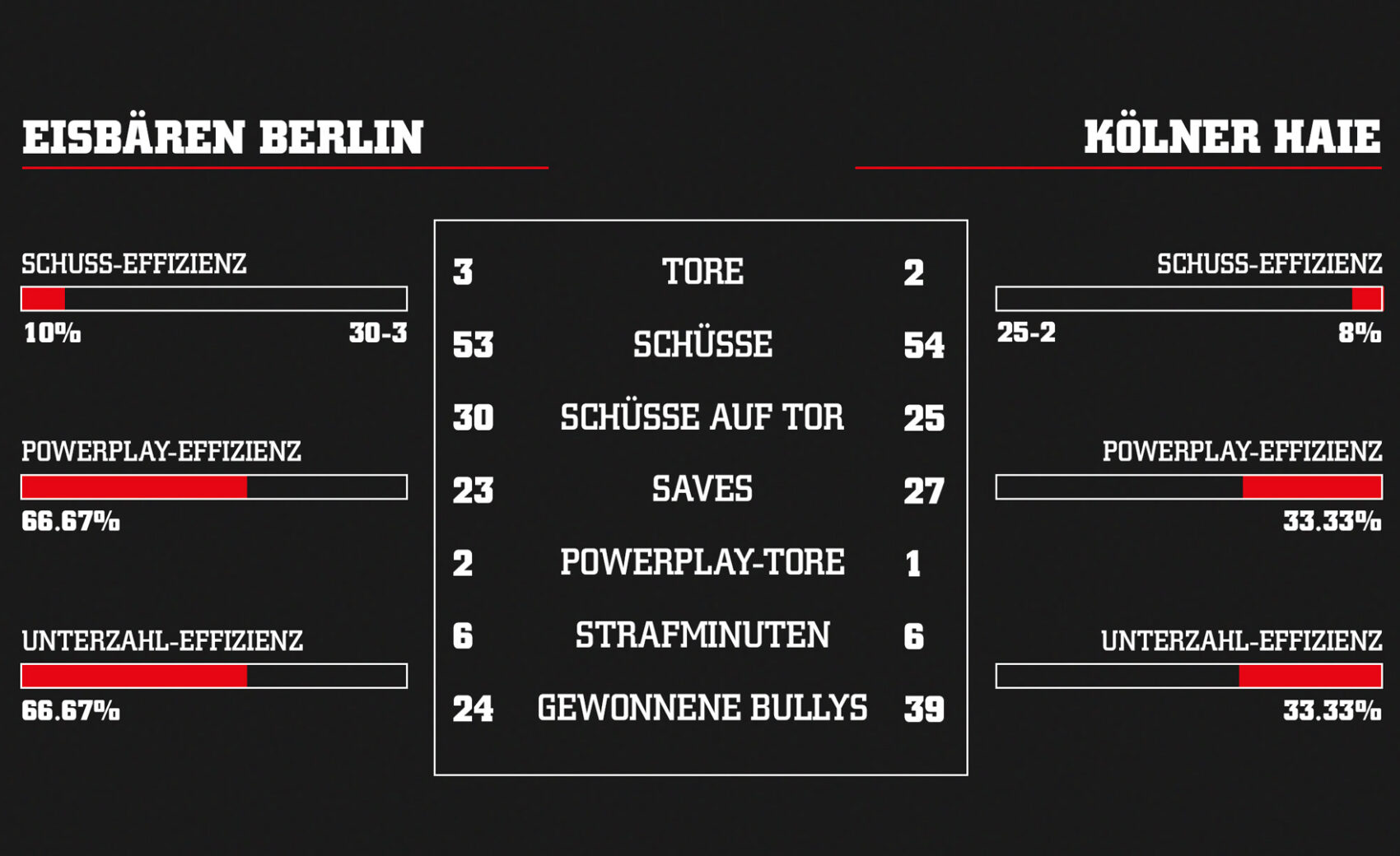 In einem guten Eishockeyspiel erwischte der KEC den besseren Start. Bereits nach drei Minuten konnten die Haie in Führung gehen. Im Powerplay lief die Scheibe gut durch die eigene Reihe, ehe Nick Bailen genug Platz hatte, um aus halbrechter Position abzuziehen. Louis-Marc Aubry versperrte Berlins Goalie Tobias Ancicka mit einem guten Screen die Sicht, sodass die Scheibe im Winkel landete, 1:0 KEC. Eine wichtige Szene sollte sich dann kurz vor Ende des ersten Drittels abspielen – Kölns Kapitän Mo Müller verletzte sich nach einem Zweikampf. Der KEC-Akteur biss zunächst auf die Zähne, kehrte aber im letzten Drittel gar nicht mehr aufs Eis zurück. Dieser Ausfall sollte enorm viel Kraft kosten. Doch das sollte nicht die einzige schlechte Nachricht des ersten Drittels sein: Zwei Minuten vor Schluss kamen die Gastgeber im Powerplay durch Jonas Müller zum zu diesem Zeitpunkt etwas überraschenden Ausgleich (19.).
