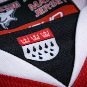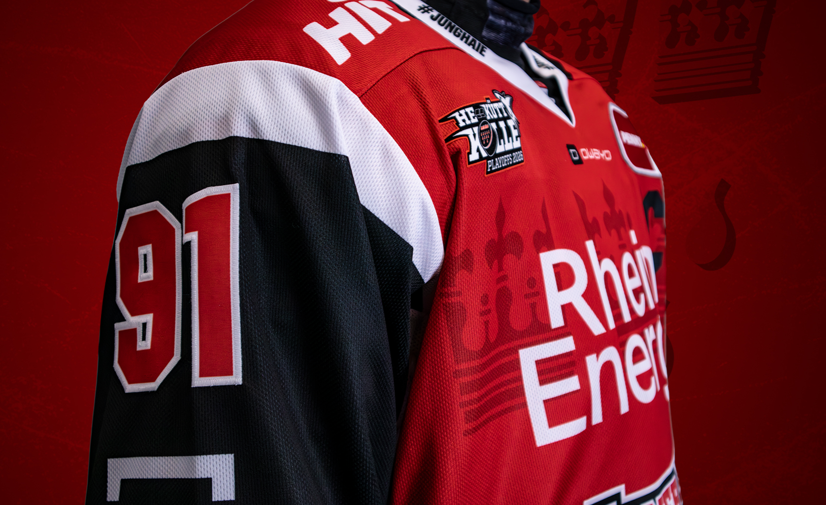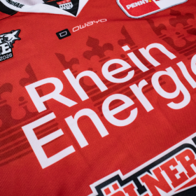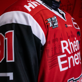 Das diesjährige Playoff-Trikot ist in rot-weiß-schwarz gehalten und besticht mit vielen Details. So ist beispielsweise auf der Vorderseite des Trikots, sowie auch im Playoff-Logo, eine Silhouette des Kölner Stadtwappen eingearbeitet, auf der Brust findet sich unser Playoff-Motto wieder.