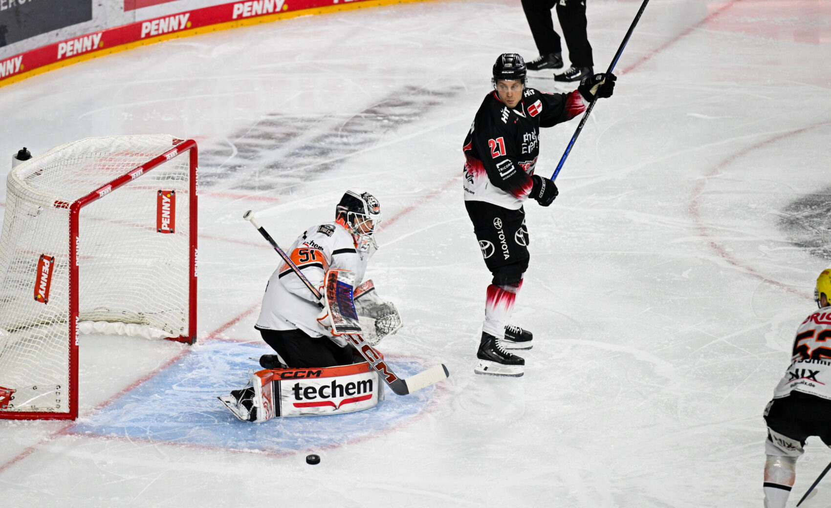 Der Schlussabschnitt begann für uns denkbar ungünstig. Frankfurt kam entschlossen aus der Kabine und erhöhte den Druck auf unser Tor. In der 42. Minute fiel der Ausgleich, als Pasanen eine freie Scheibe in unserem Torraum nach einem ersten Save von Juvonen über die Linie drückte. Das Spiel blieb in der Folge offen, doch Frankfurt nutzte wenig später eine weitere Gelegenheit konsequent. Nach einem Zuspiel in unseren Slot schob Burns zur erstmaligen Führung für die Gäste ein. Wir versuchten, schnell zu antworten, blockten defensiv wichtige Schüsse und suchten offensiv den Weg nach vorne, doch die Löwen präsentierten sich in dieser Phase sehr effizient.