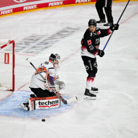 In der Schlussphase gingen wir noch einmal volles Risiko, erspielten uns Abschlüsse und setzten Frankfurt stark unter Druck. Juvonen verlie in den letzten Minuten zugunsten eines zusätzlichen Feldspielers das Eis, doch ein Treffer wollte uns trotz mehrfacher guter Abschlüsse nicht mehr gelingen. Stattdessen nutzten die Gäste die sich bietenden Räume und trafen zunächst ins leere Tor zum 1:3, ehe Pasanen mit seinem zweiten Treffer des Abends kurz vor der Schlusssirene den Endstand von 1:4 herstellte.