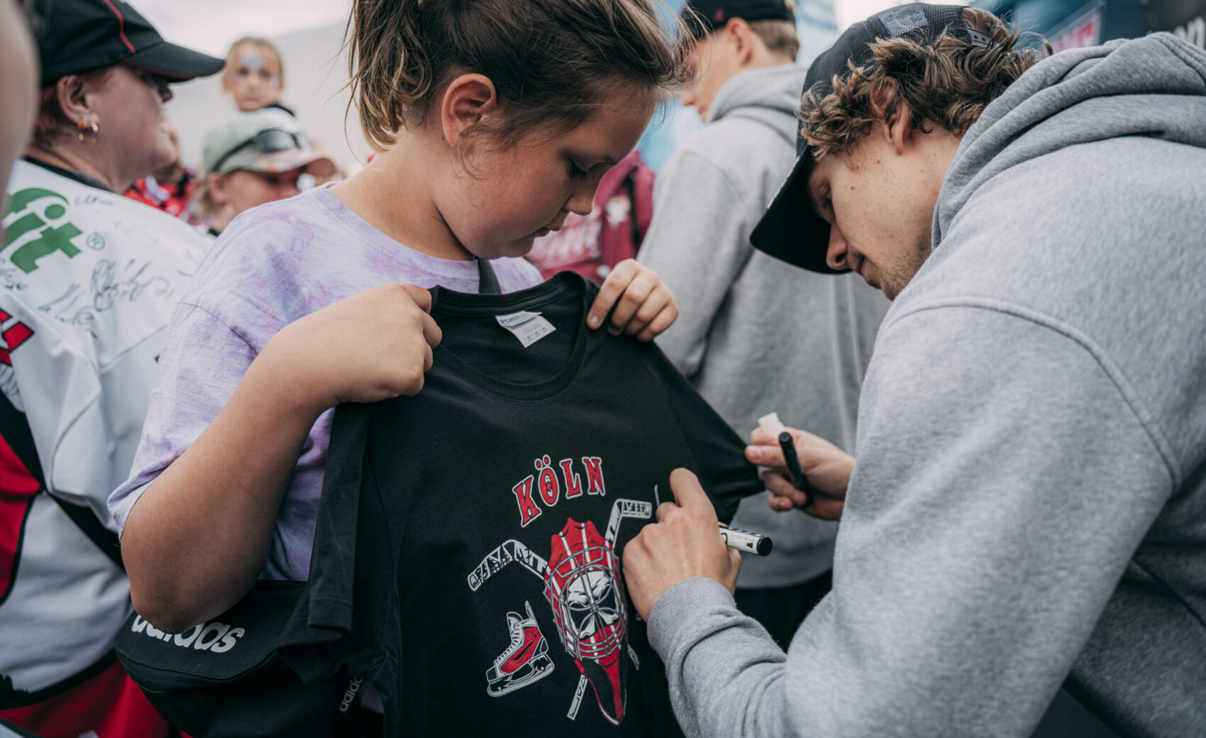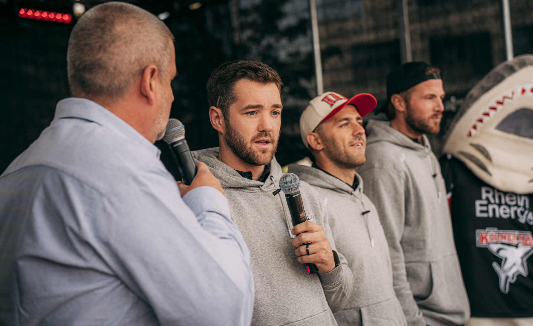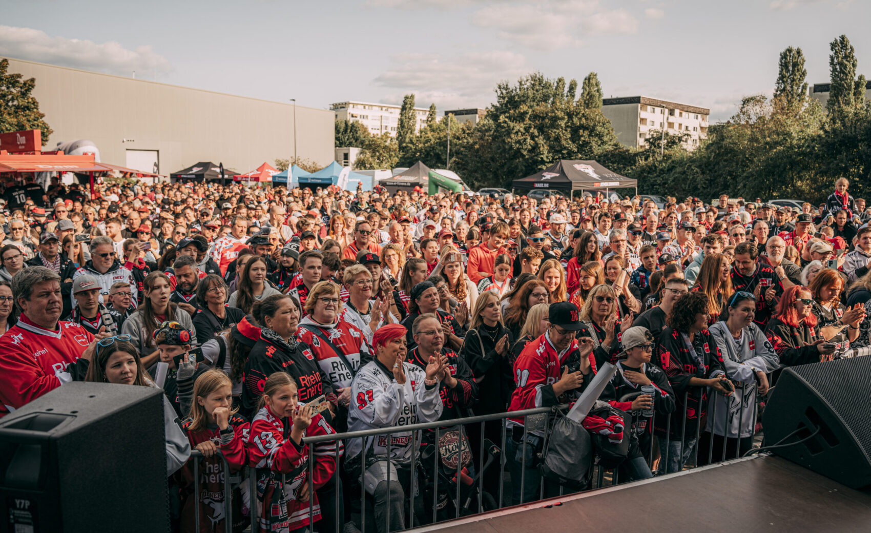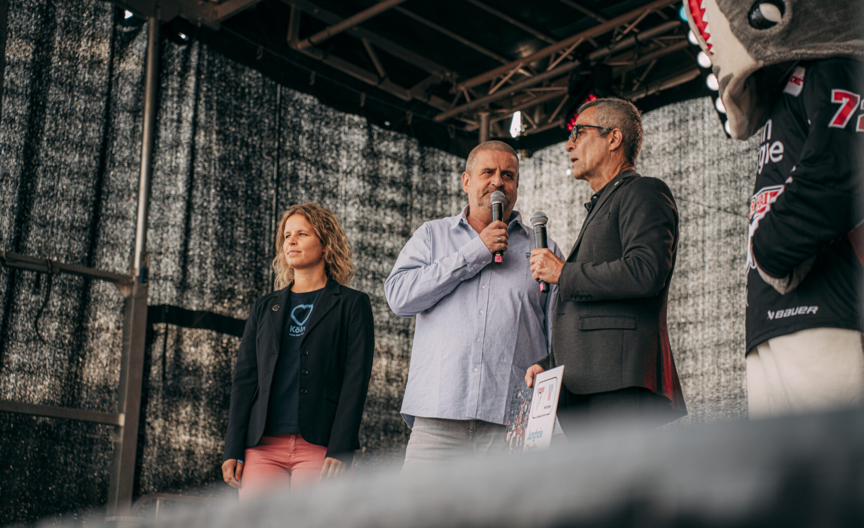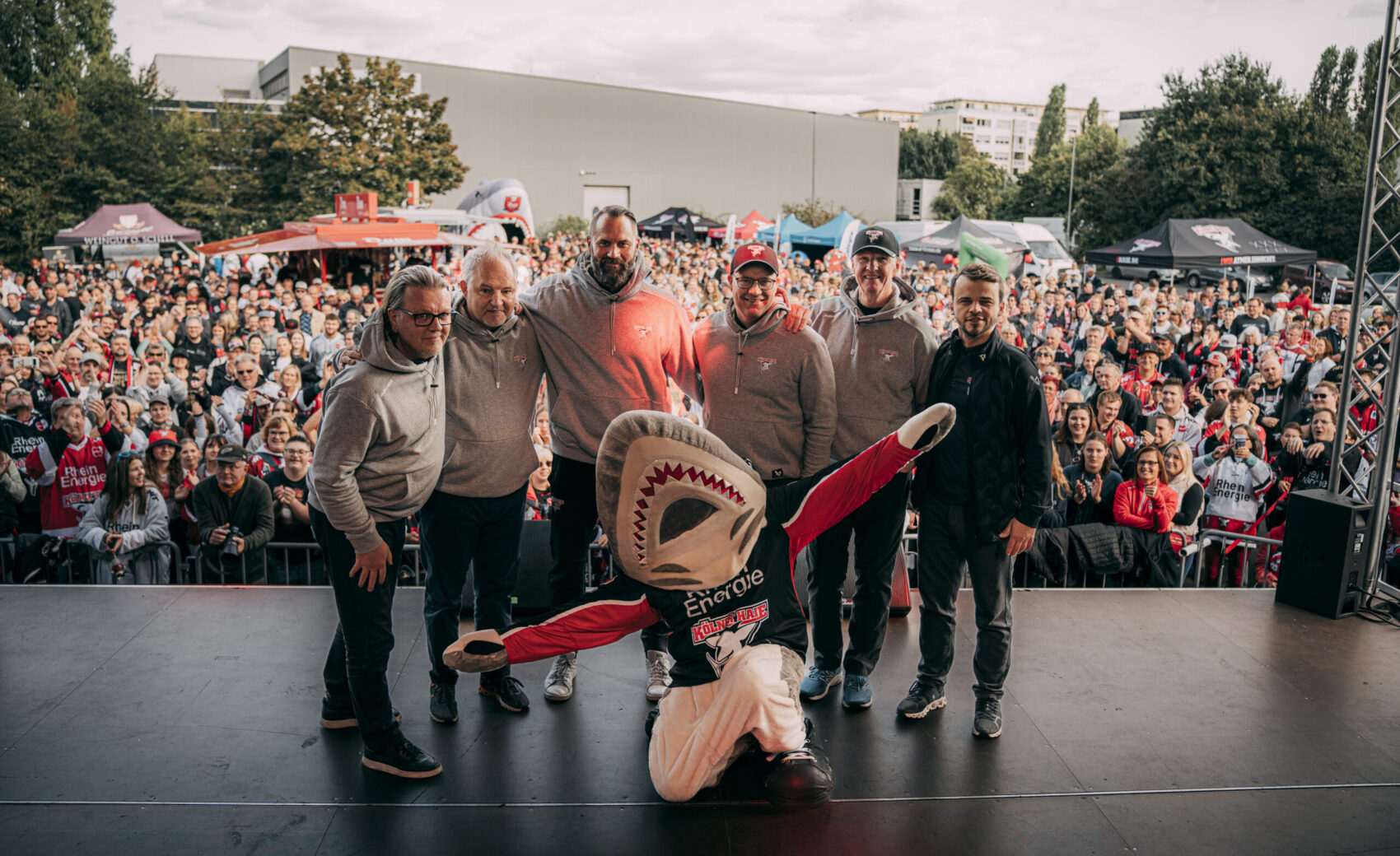 Um kurz nach 15:30 Uhr startete das Bühnenprogramm mit eröffnenden Worten unseres Geschäftsführers Philipp Walter. Anschließend gab es Talks mit dem Haie-Fanprojekt, NetCologne und den Junghaien. Dabei wurde auch ein von NetCologne auf 50.000 Euro aufgerundete Scheck der NetCologne Haie-Charity aus der vergangenen Saison an unseren Nachwuchs übergeben!