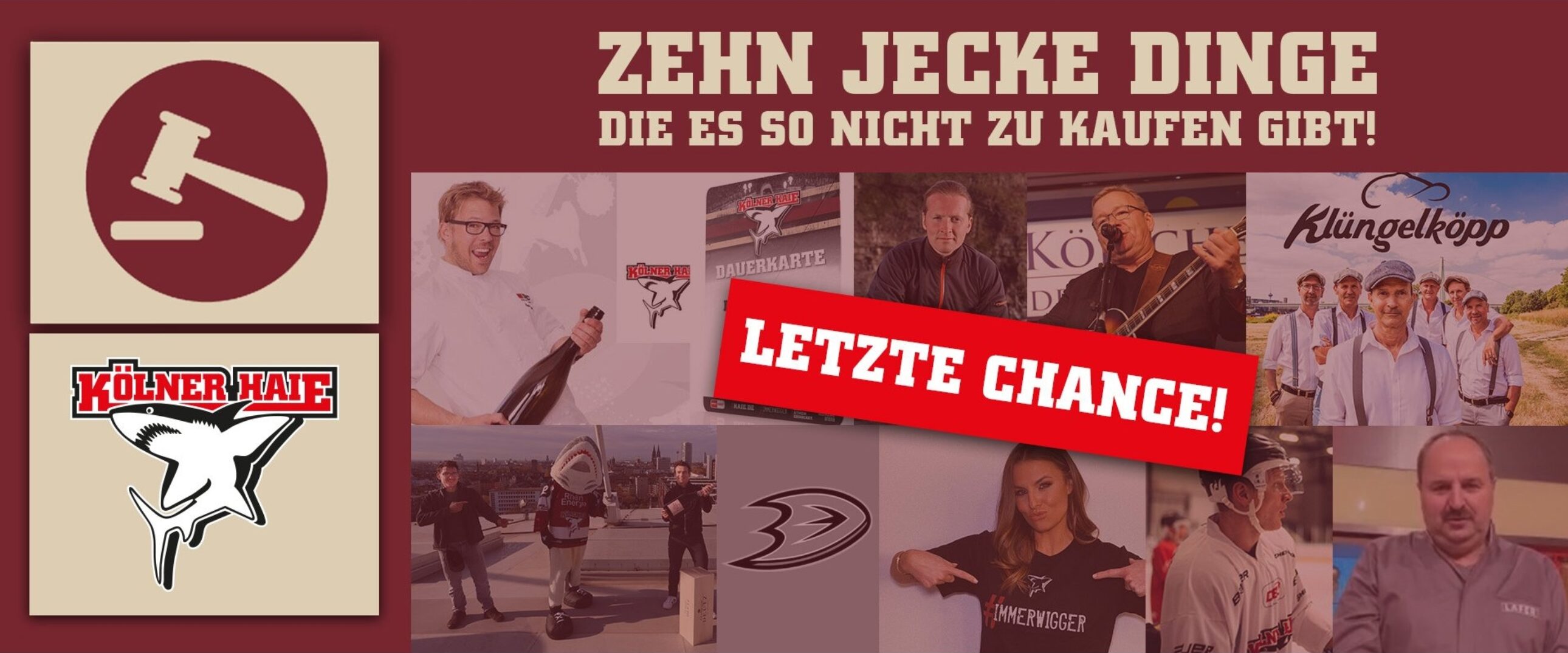 Als besonderes „Dankeschön“ werden alle, die eines der zehn „jecken Dinge“ ersteigert haben – zu einem Zeitpunk, an dem es wieder erlaubt ist – bei einem Haie-Heimspiel in eine Loge (mit Essen & Getränken) eingelden.