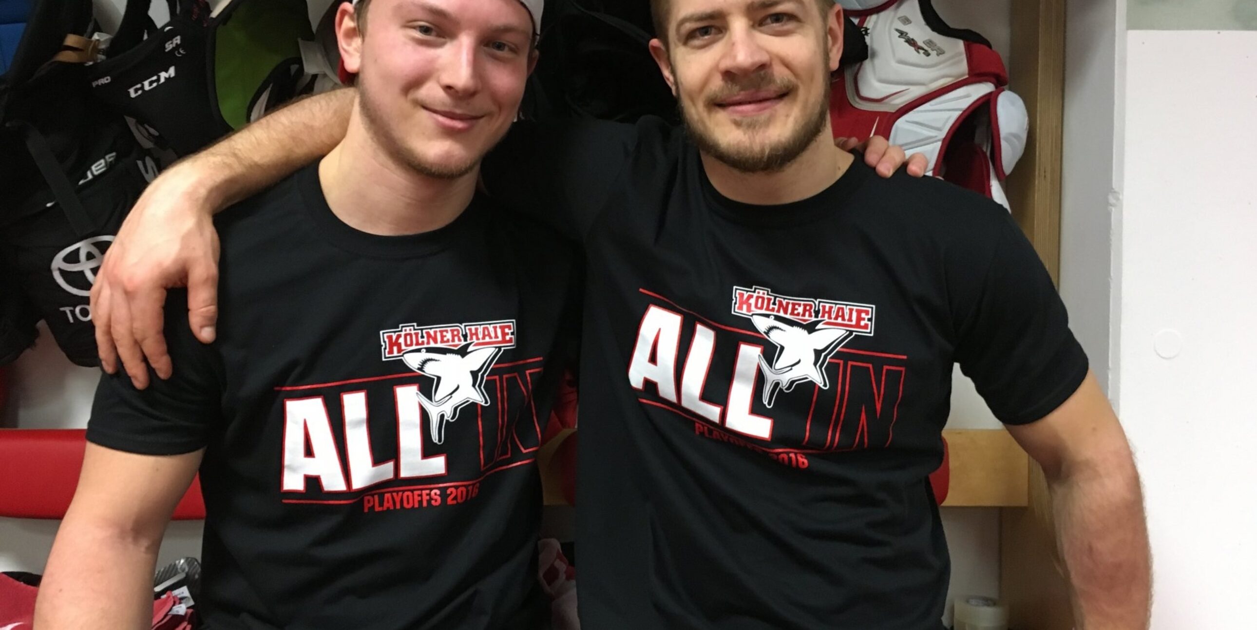 Endlich gehts los! Am Mittwochabend steigt Spiel eins in der ersten Playoff-Runde zwischen den Kölner Haien und den Adlern aus Mannheim. Los gehts um 19:30 Uhr in der LANXESS arena (Tickets unter www.haie.de). Und pünktlich zum Playoff-Start gibt es die „ALL IN“-Kollektion im Shop im Haie-Zentrum (Gummersbacher Straße, Köln-Deutz), beim Spiel im Gameday-Store in der Arena oder im Online-Shop. Shirt, Schal, Pin, Tasse, Puck – die Haie gehen „ALL IN“! Geht mit!