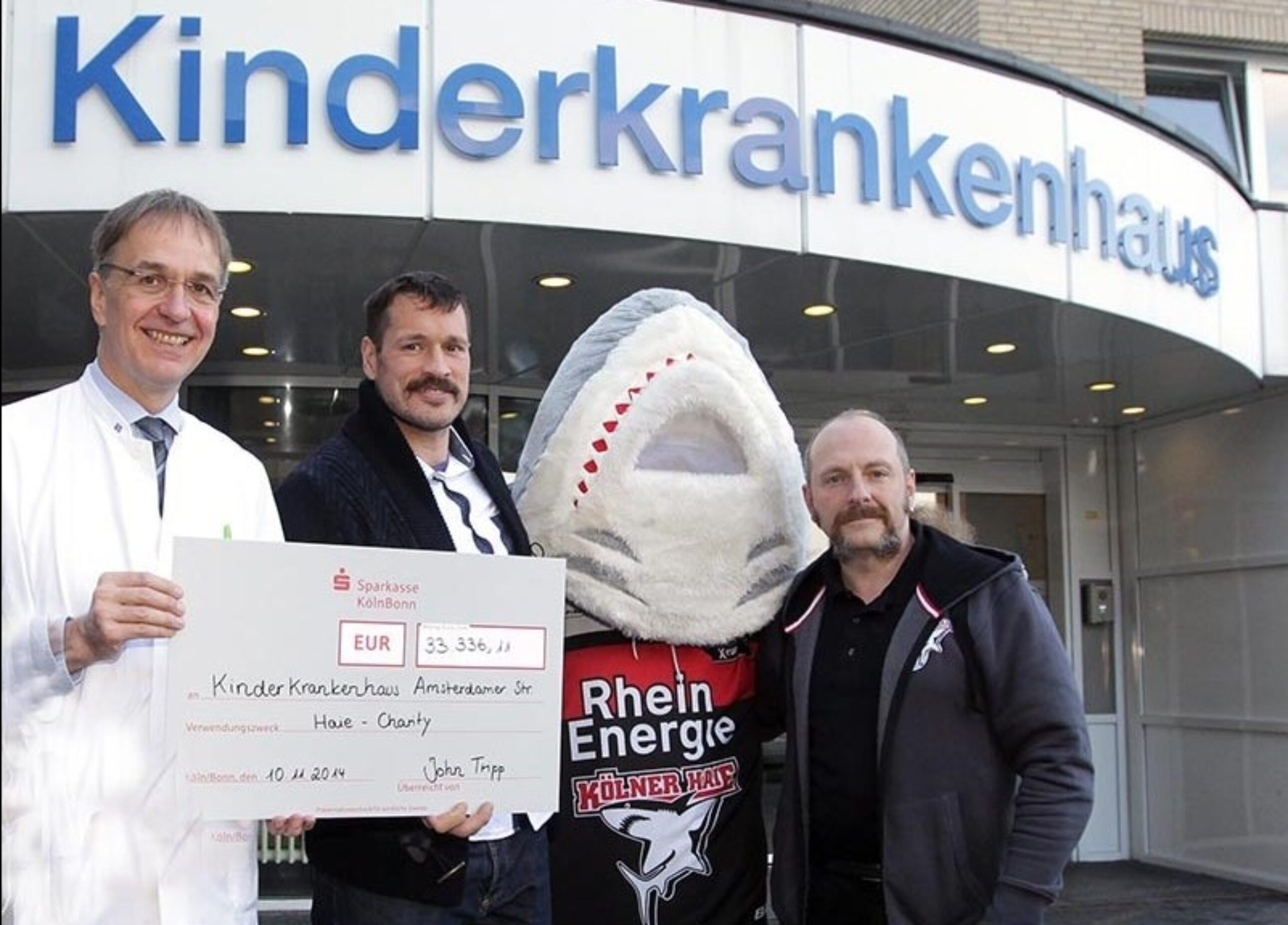 Jetzt war es wieder soweit: In der letzten Saison erreichte die „Haie-Charity“ die Rekordsumme von 33.336,11 Euro (seit 2010 kamen somit über 100.000 Euro zusammen). Dieses Geld wurde von John Tripp an das Kinderkrankenhaus Amsterdamer Strae in Köln bei einer symbolischen Scheckübergabe überreicht.