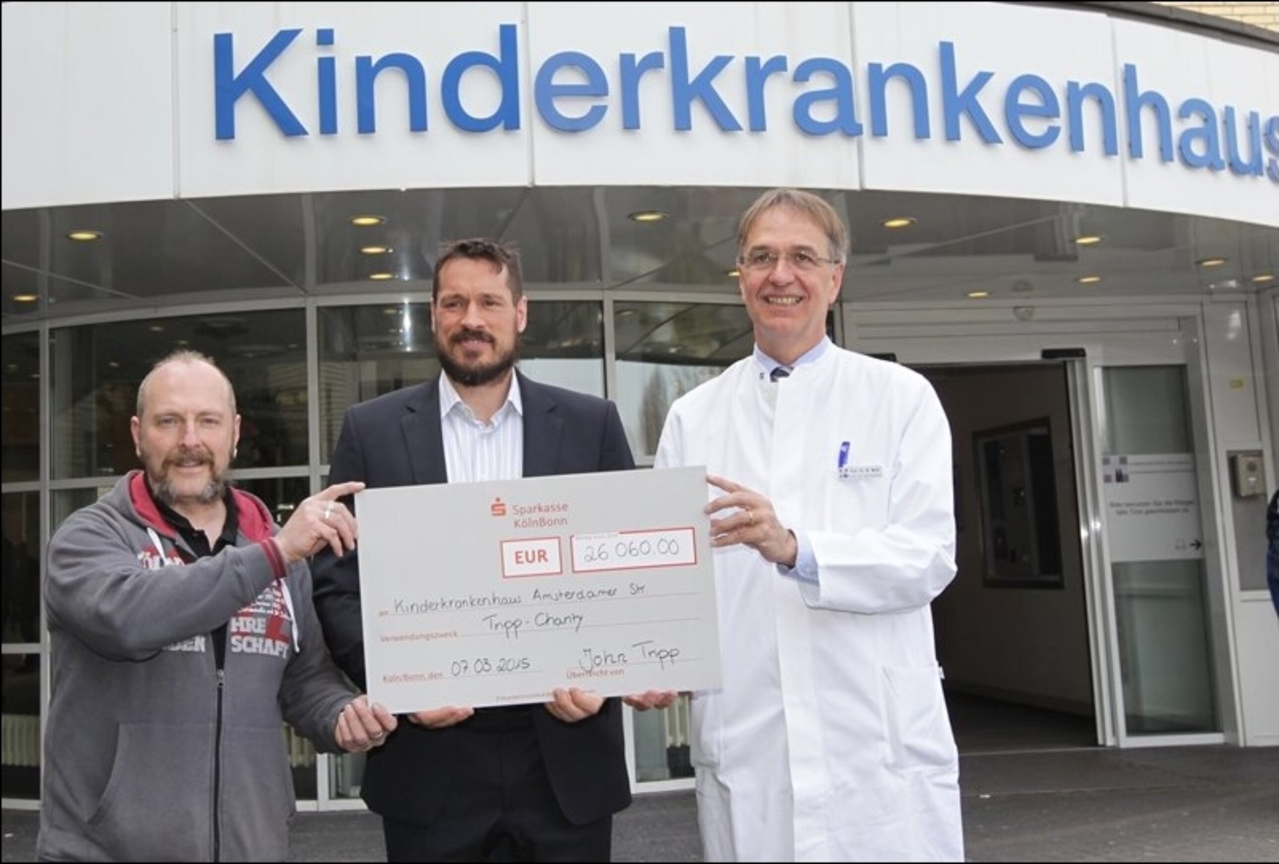 Jetzt war es wieder soweit: In der letzten Saison erreichte die „Tripp-Charity“ eine Summe in Höhe von 26.060,00 Euro (seit 2010 kamen damit weit über 120.000 Euro zusammen). Dieses Geld wurde nun letztmalig unter der Schirmherrschaft von John Tripp an die Kinderonkologie des Kinderkrankenhauses Amsterdamer Strae in Köln bei einer symbolischen Scheckübergabe überreicht.