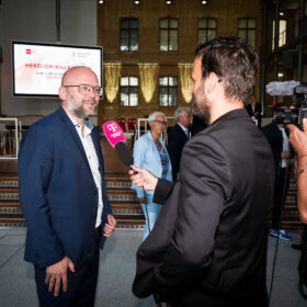 Neben interessanten Gesprächen mit Größen aus dem Eishockeysport auf der Bühne, die von Fernsehmoderator und Sportjournalist Sascha Bandermann geführt wurden, gab die PENNY DEL während des Jubiläumsempfangs Einblicke in geplante Aktivitäten für die Saison 2023/2024. Auch dieser Abend zeigte einmal mehr deutlich, dass sich alle auf die anstehende, ganz besondere, Saison freuen.
