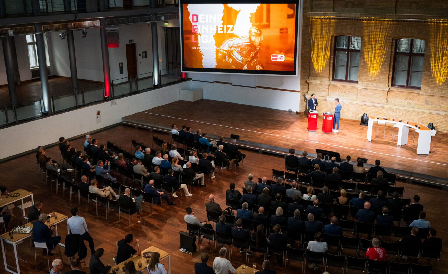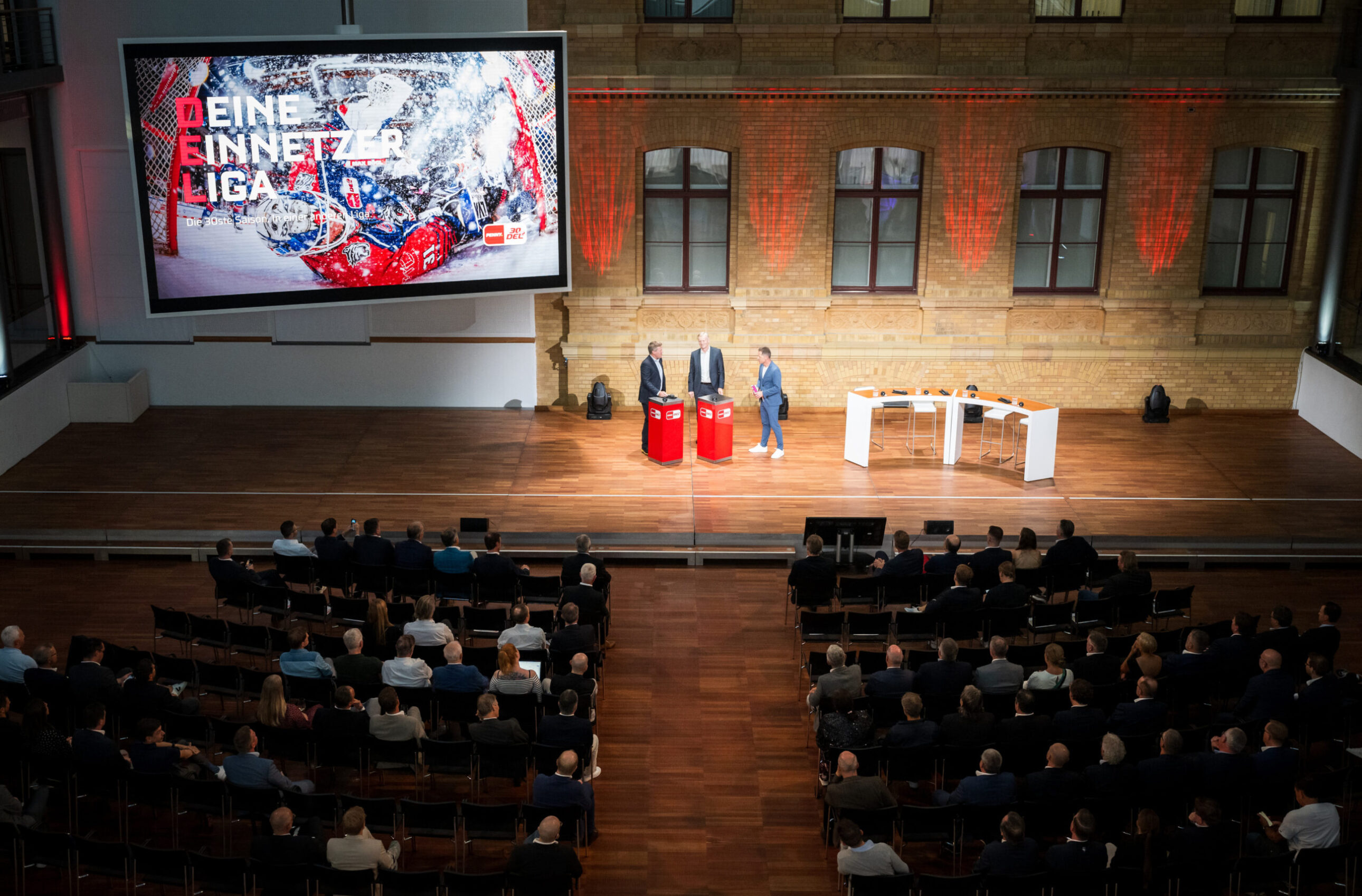 Am Montagabend trafen sich auf Einladung der PENNY DEL insgesamt rund 200 Gäste in der Hauptstadtrepräsentanz der Telekom, um sich gemeinsam auf die anstehende 30. PENNY DEL-Saison einzustimmen. Neben Bundestrainer Harold Kreis und IIHF-Präsident Luc Tardif nahmen u.a. auch Haie-Geschäftsführer Philipp Walter und KEC-Direktor Finanzen & Organisation Torsten Pfennig an der kurzweiligen Veranstaltung teil.