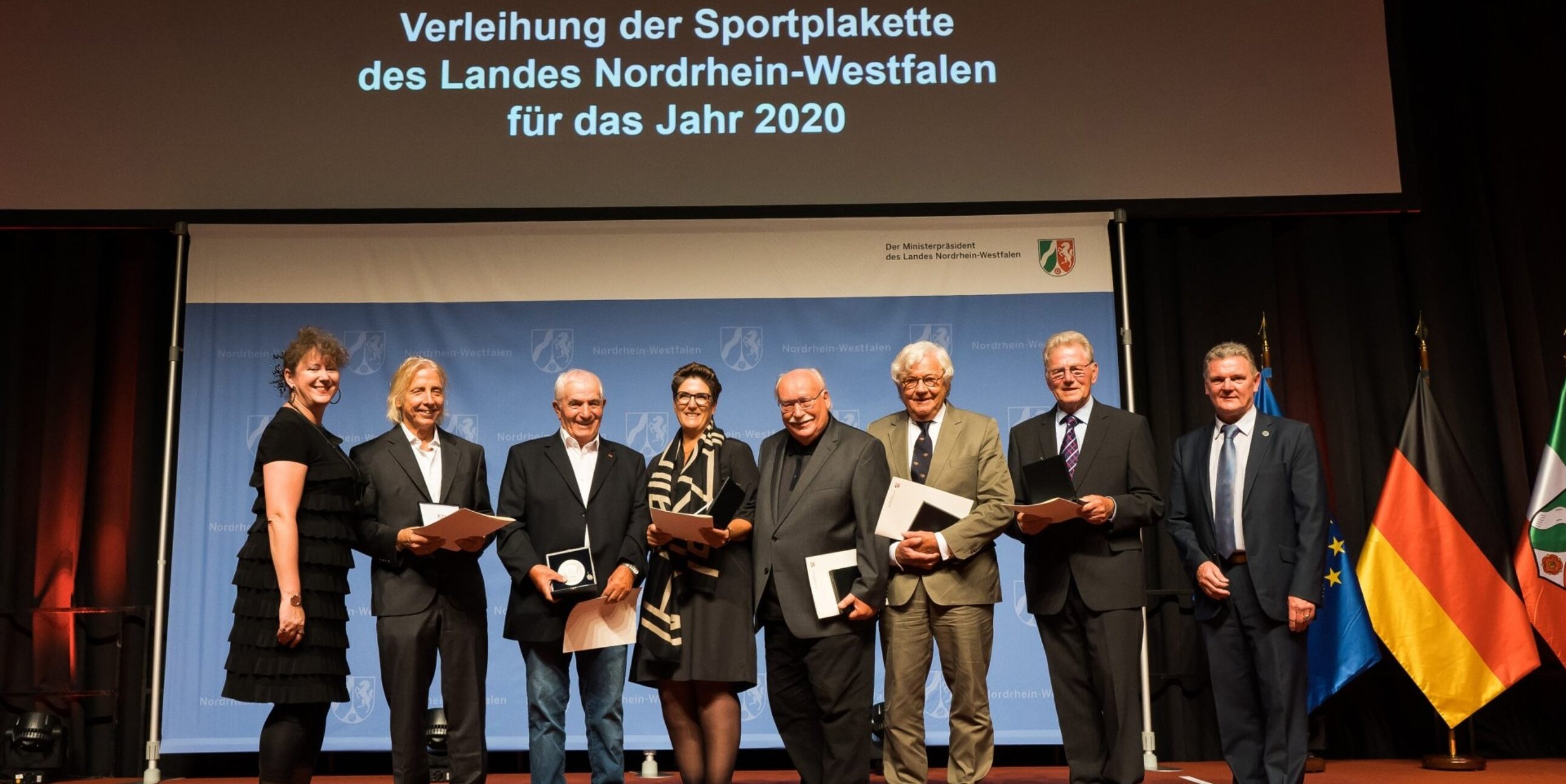 Im Bild: Rainer Maedge (vierter von rechts) erhielt vom Land NRW die Sportplakette