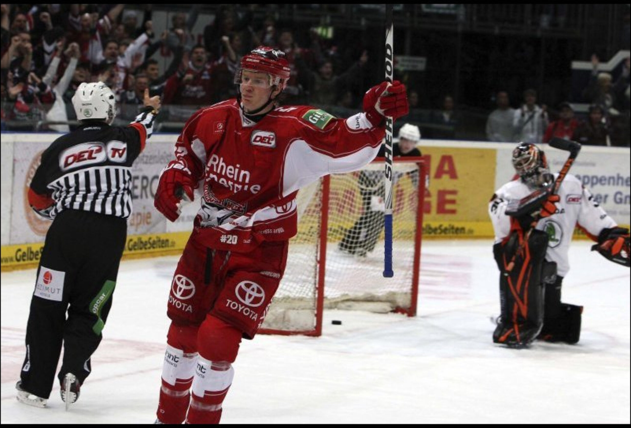 Den Lohn in Form des Extrapunktes holte sich der KEC nach torloser Verlängerung, in der Danny aus den Birken acht Sekunden vor Schluss einen Penalty hielt (!), im abschlieenden shoot-out. Matt Pettinger und schlielich Philip Gogulla (bei Wolfsburgs Treffer durch Nathan Paetsch) waren erfolgreich, so hie es am Ende 4:3 n.P. für Köln.