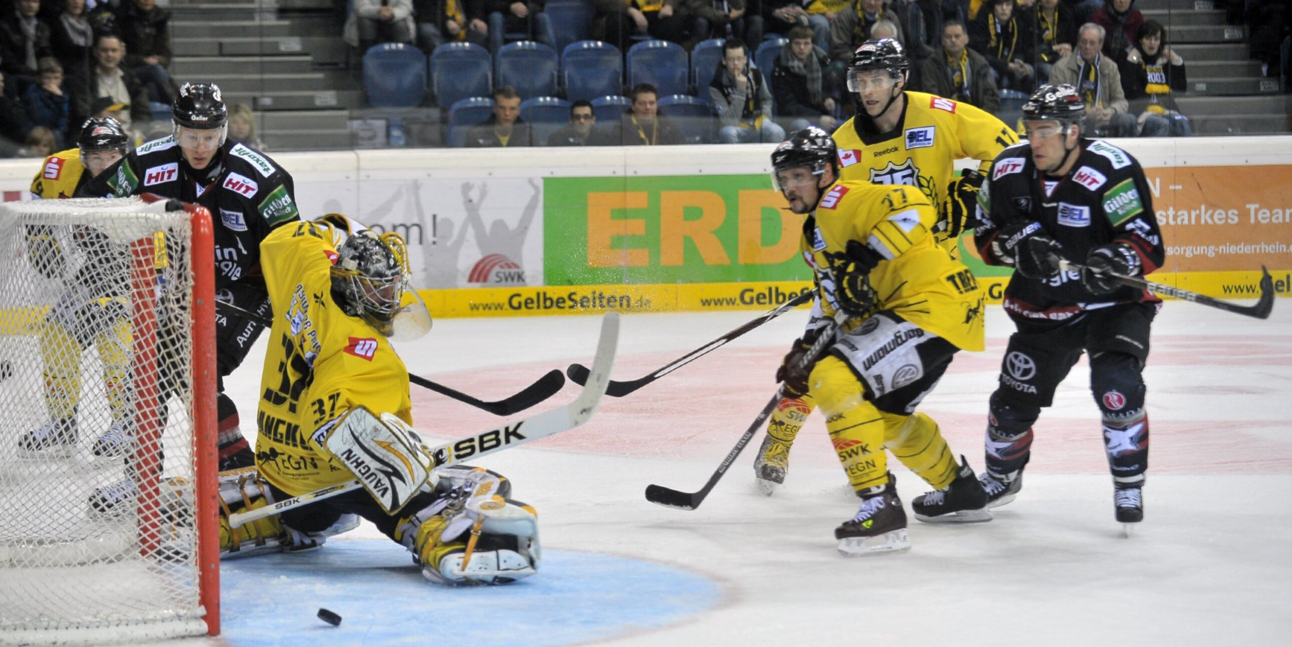 Die Haie haben am Freitagabend in Krefeld gewonnen und sich dadurch auf einen Playoff-Platz verbessert! Dabei mussten die 7.903 Zuschauer viel Geduld mitbringen. Erst kurz vor 23 Uhr stand der Sieger fest. Nach 65 torlosen Minuten entschied das Penaltyschieen die Partie.
