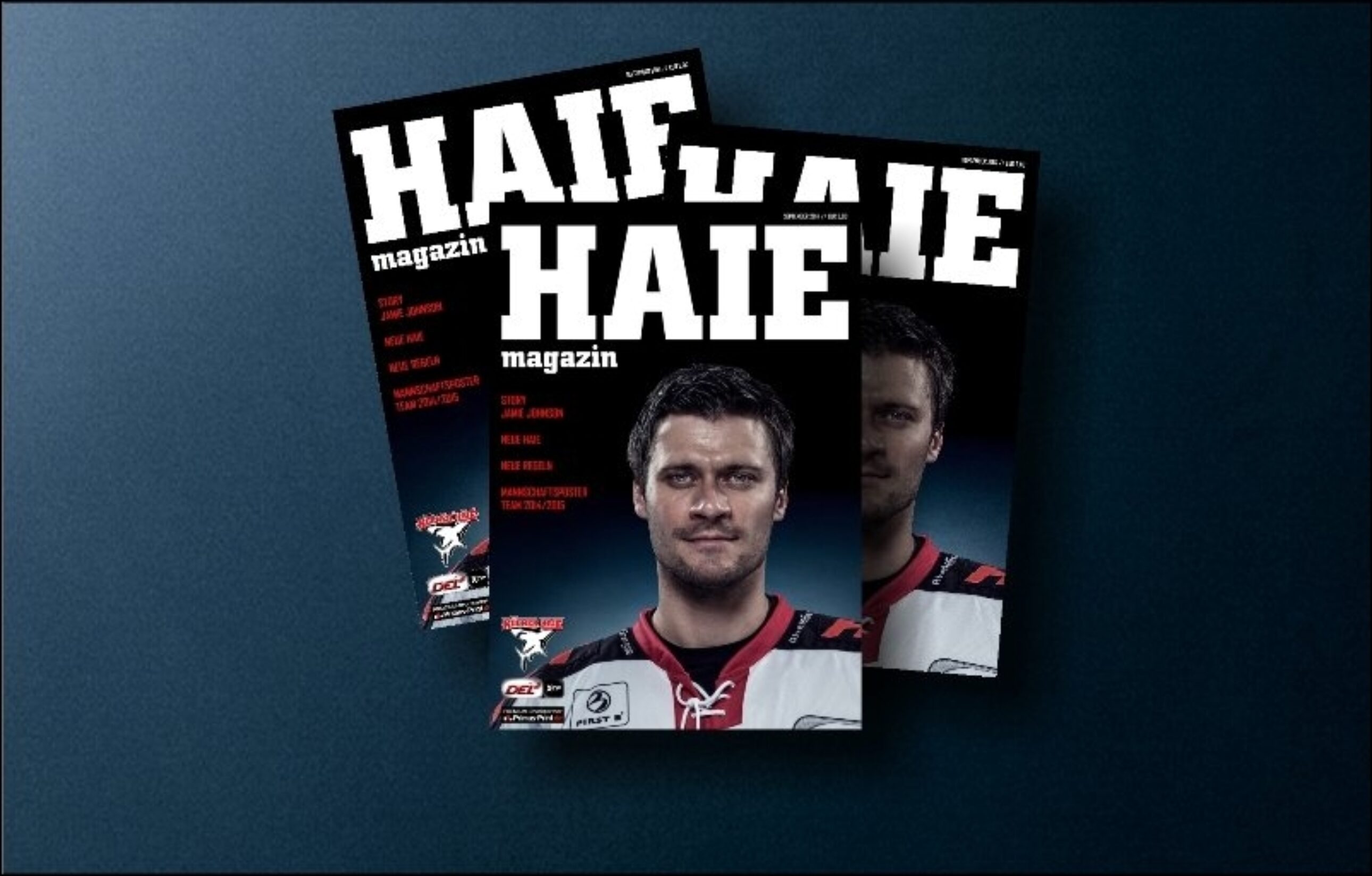 Das Haie-Magazin September ist ab Sonntag bei den Haie-Heimspielen in der Arena und im Haie-Shop für € 3,- erhältlich.